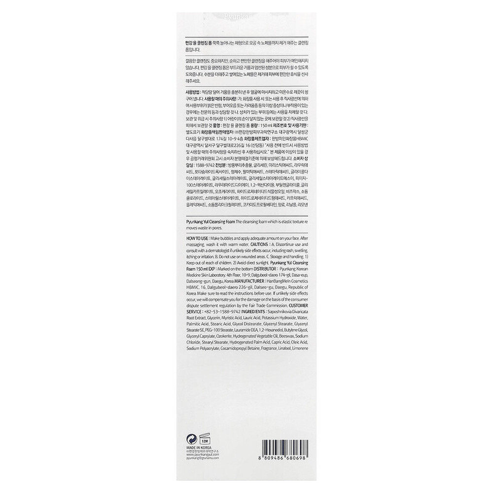 香港直邮Pyunkang Yul洁面乳毛孔净澈舒颜修护控油不紧绷150正品