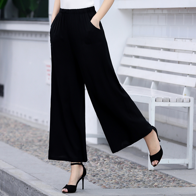 胖妹妹mm梨形身材高腰宽松显瘦休闲裤 女秋冬新款 子 裤 黑色阔腿西装