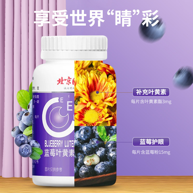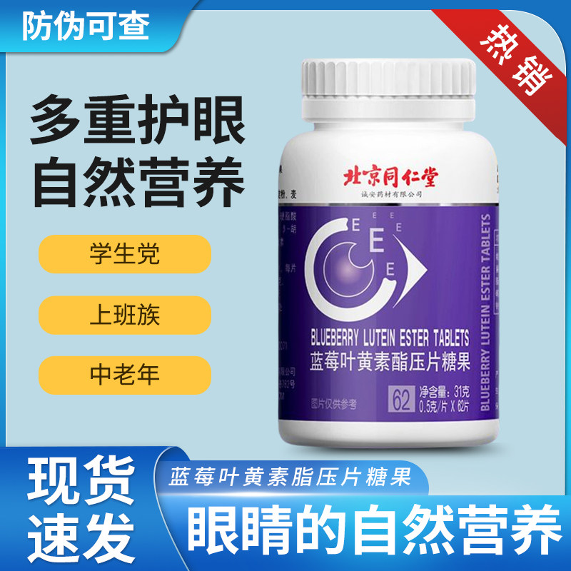 北京同仁堂儿童中老年近视叶黄素酯片蓝莓越橘提取物蓝莓叶黄素