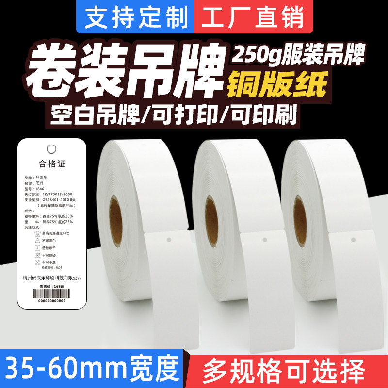 空白卷装 合格证卡挂牌卷筒铜版 合格证卷筒打印卡纸35 60圆角直角250克吊牌铜板纸卷装 纸 吊牌服装