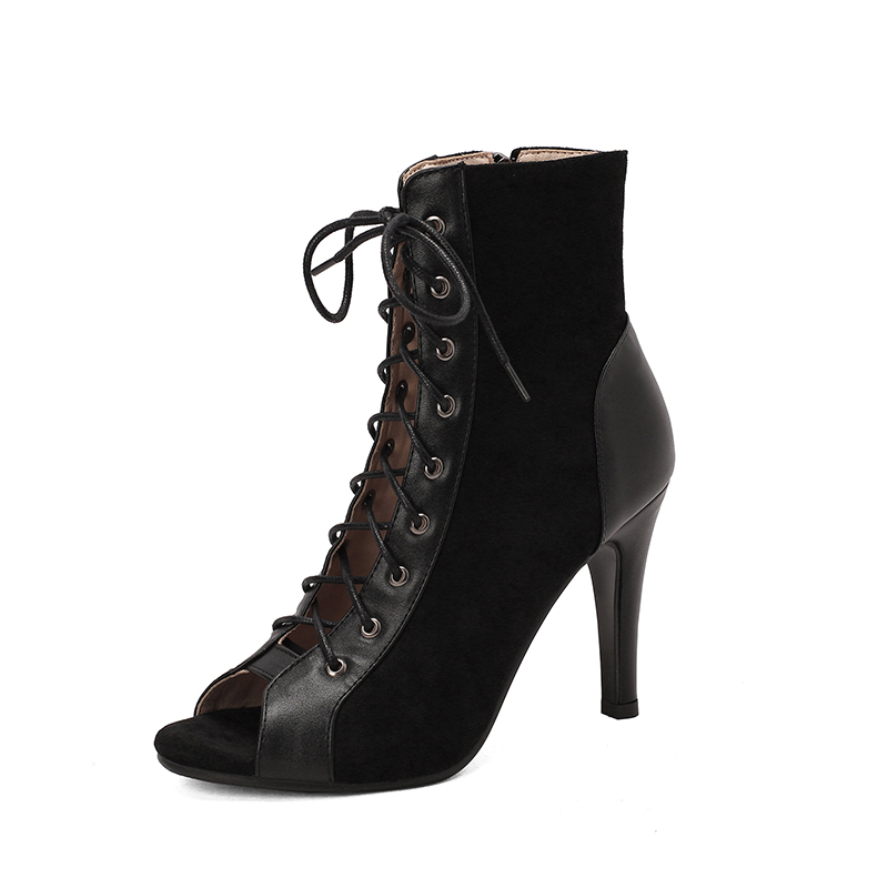 heels高跟凉鞋 欧美绑带鱼嘴凉靴女夏季 细跟镂空短靴jazz爵士舞鞋