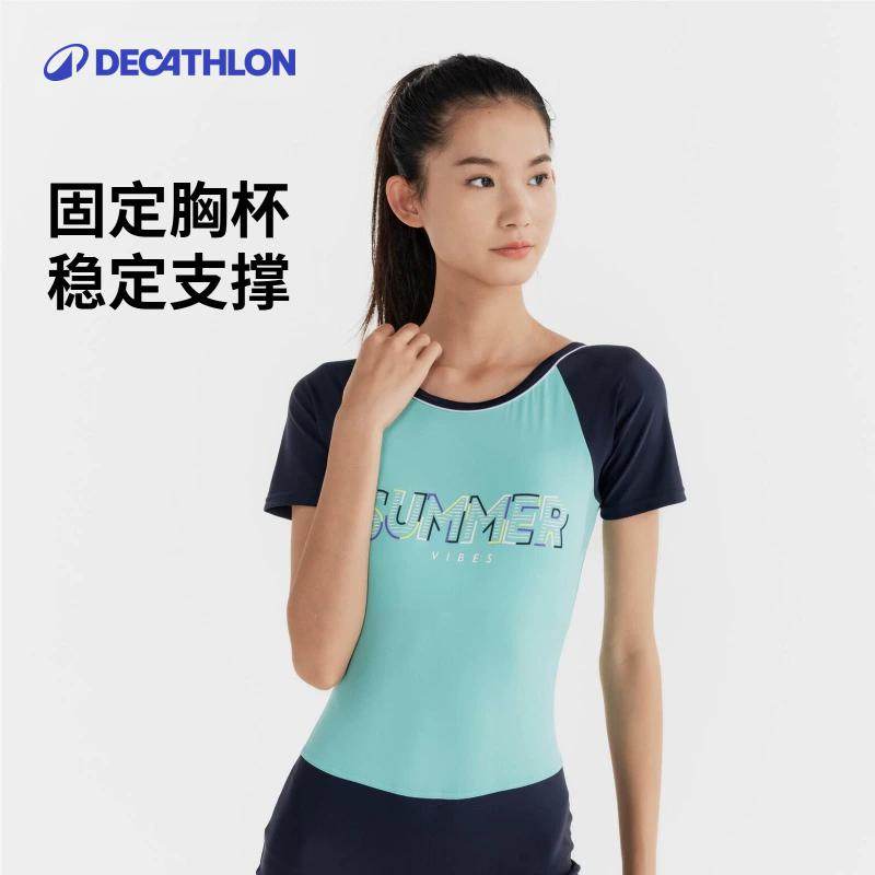 泳装 连体专业游泳衣保守大码 IVL2 短袖 迪卡侬泳衣女夏显瘦2024新款