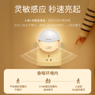 欧普人体感应小夜灯起夜喂奶卧室床头柔光护眼老人过道插座插电亮
