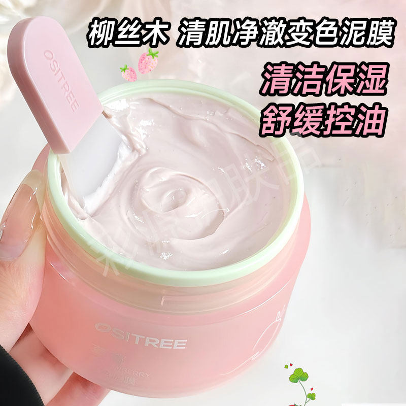 柳丝木草莓变色泥膜清洁净澈毛孔污垢保湿 控油舒缓涂抹面膜女男