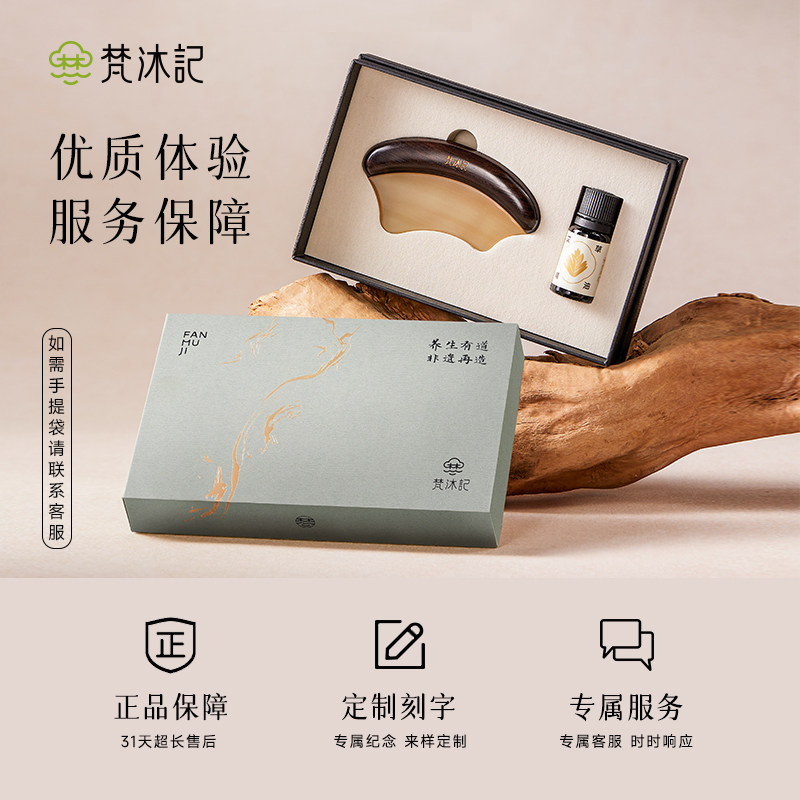 梵沐记正品 刮痧板面部美容专用脸部提拉肩颈背部全身通用檀木羊角