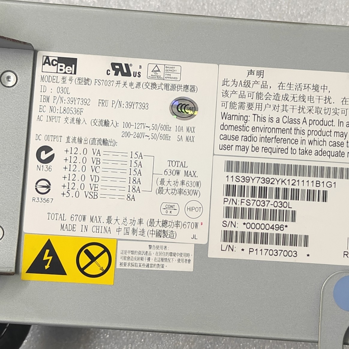 FS7037 030L IBM 39Y7392 X3500M2 服务器电源 39Y7393 X3400