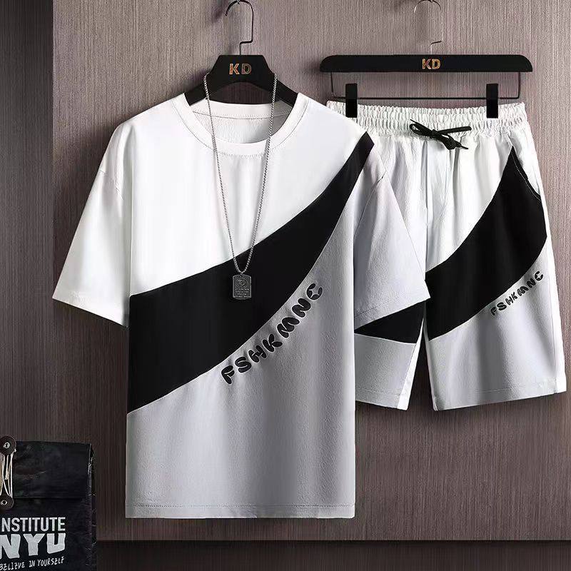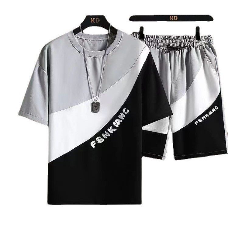 男士 夏季 跑步速干衣服短袖 短裤 回力冰丝休闲运动健身套装 男装 男款