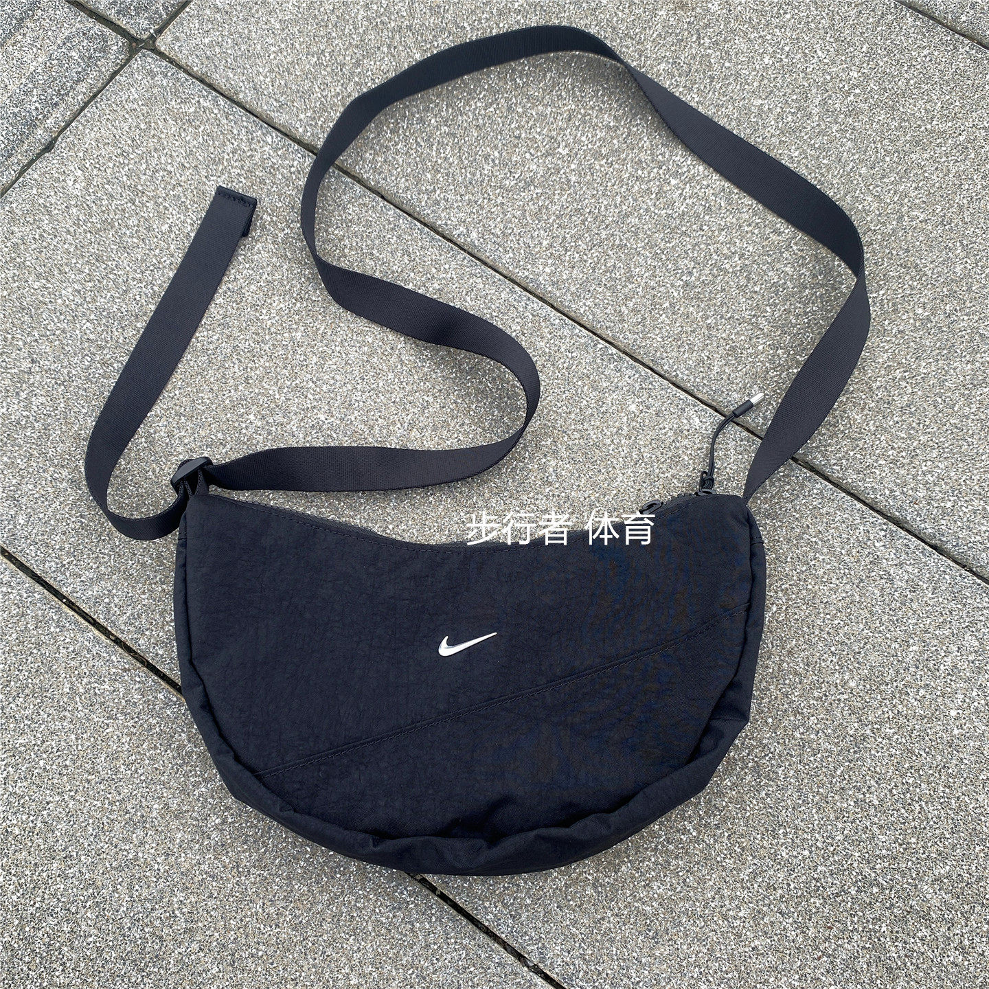 Nike耐克斜挎包黑色单肩包男女同款 010 休闲百搭圆形包轻便HQ4370