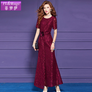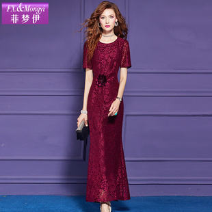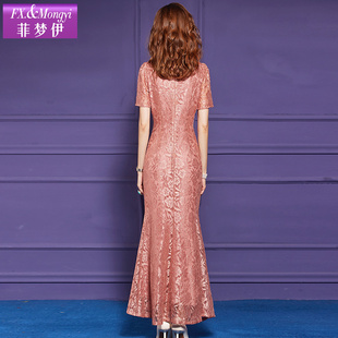 菲梦伊蕾丝印花高级感连衣裙女夏装 礼服长裙 轻熟别致独特气质修身