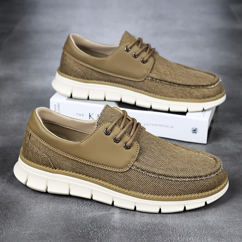 英伦商务爸爸大码 香港品牌男鞋 休闲帆船鞋 透气防臭轻便帆布鞋 夏季
