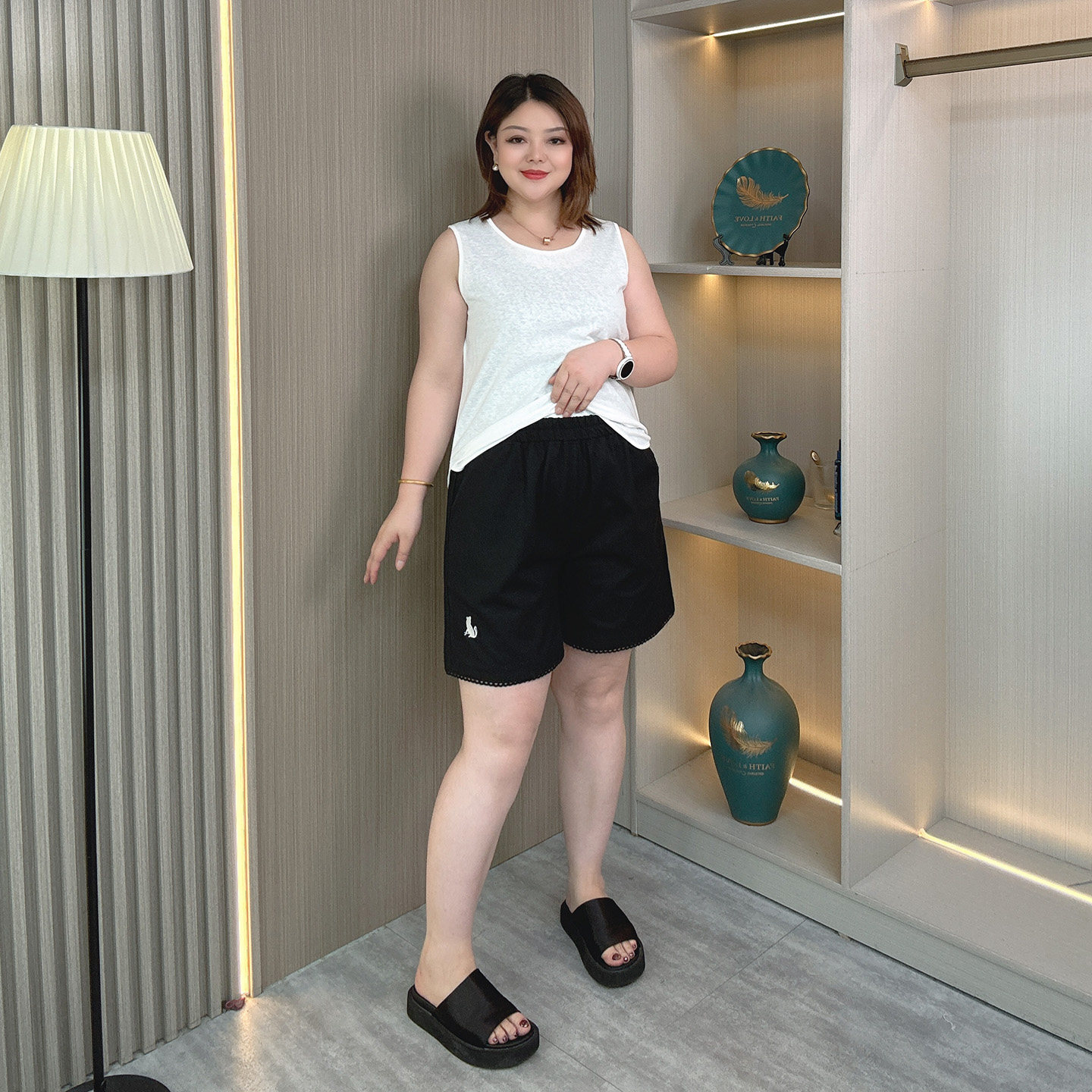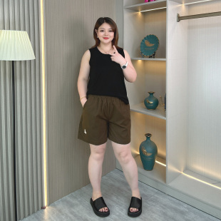 胖mm休闲显瘦宽松阔腿刺绣花边水洗棉a字热裤 大码 新款 女夏季 短裤