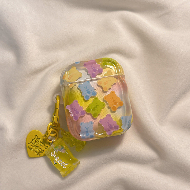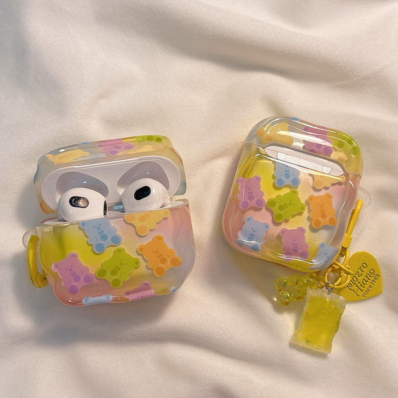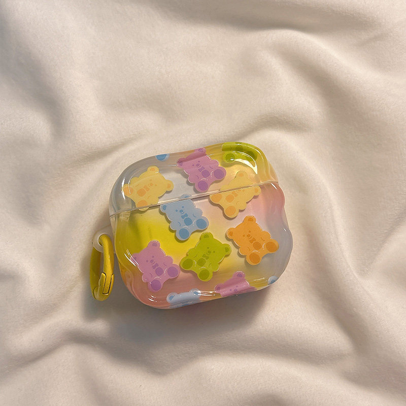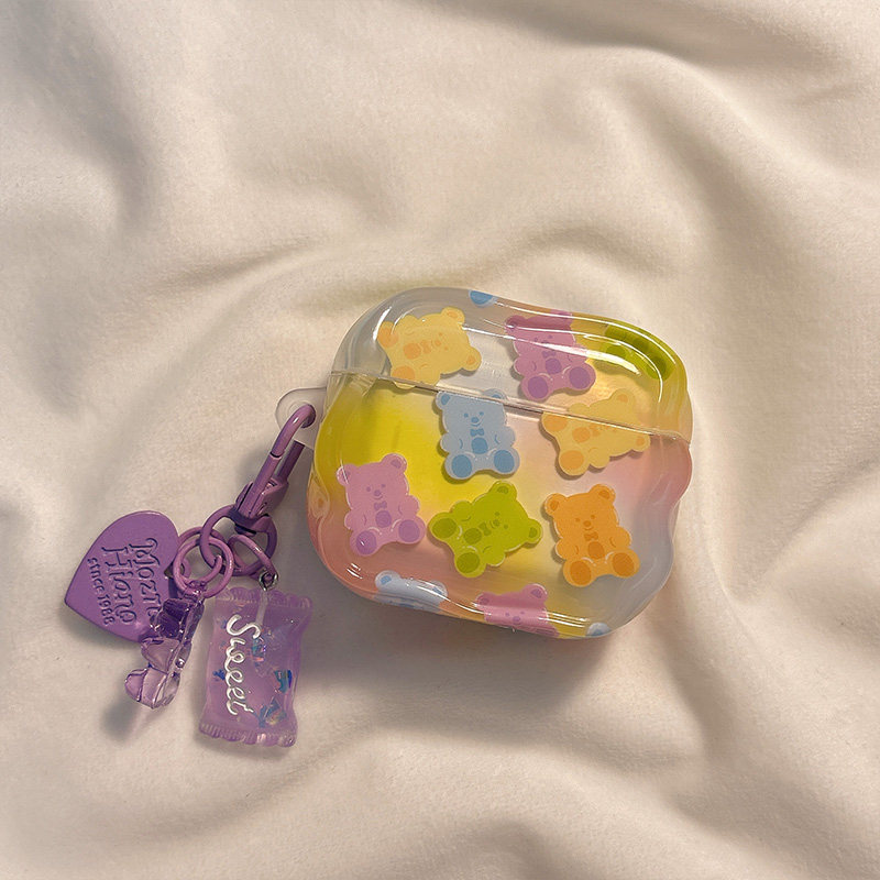 日韩彩虹卡通小熊糖果适用AirPods4保护套新款 2代无线蓝牙盒3代airpodspro2代软防摔保护壳 iPod苹果耳机壳1