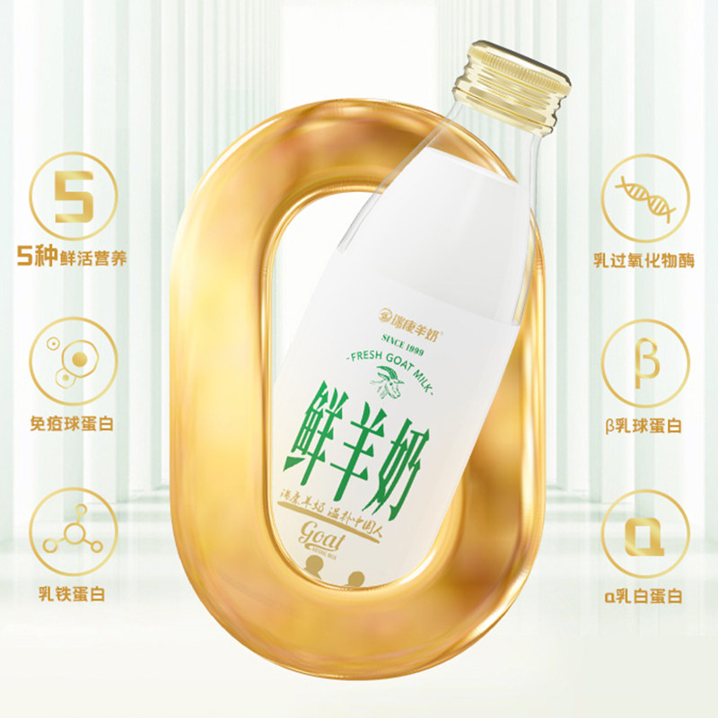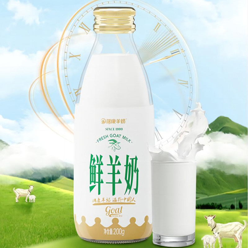 瑞康羊奶鲜羊奶纯鲜奶脱膻小分子孕妇儿童纯羊奶200ml 5玻璃瓶