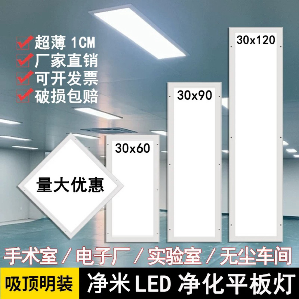 300x1200净化灯led洁净灯30x90医院手术室无尘车间平板吸顶灯明装