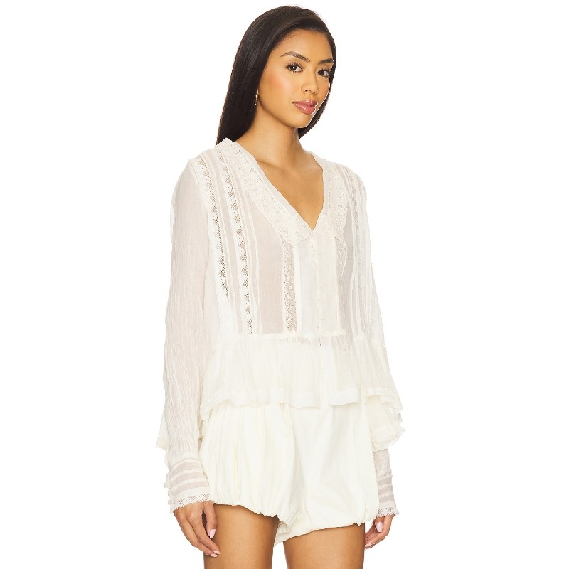 海外直邮 防晒小衫 Free 象牙白蕾丝拼接长袖 REVOLVE People衬衫