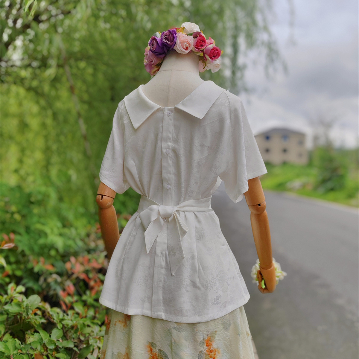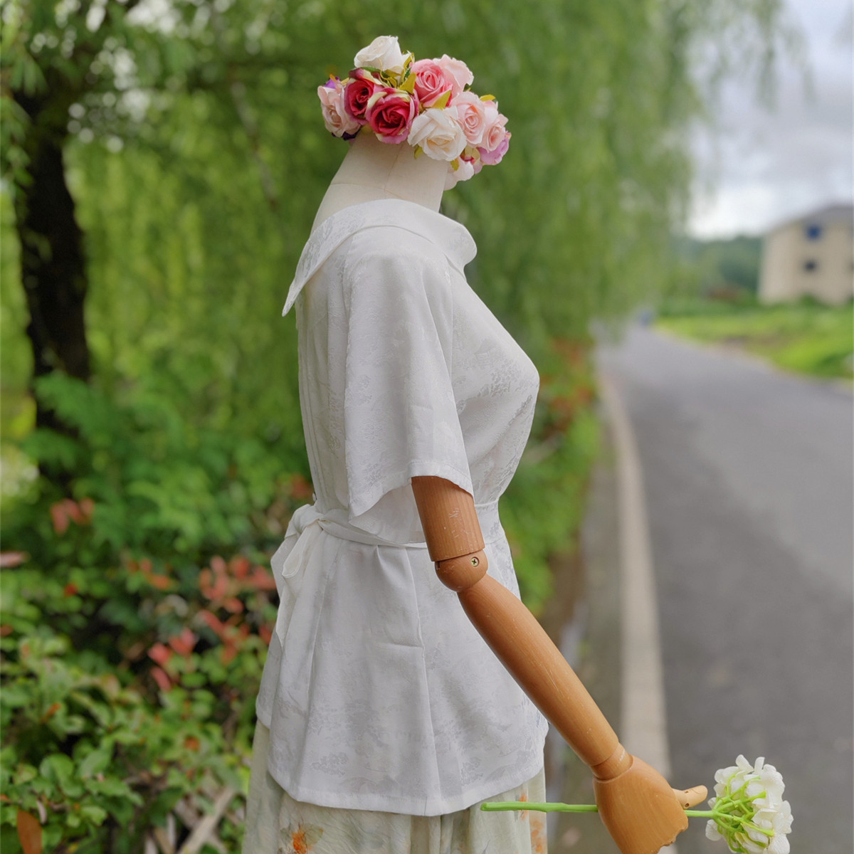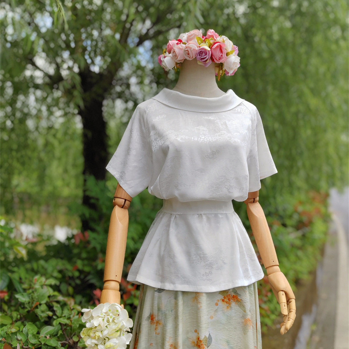上衣 滚边领仿真丝醋酸提花衬衫 兔子大人|手作服 vintage复古法式