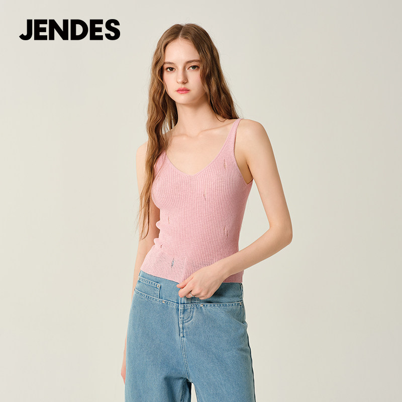 上衣 纯色气质v领针织吊带背心女夏显瘦无袖 JENDES 昆凌同款