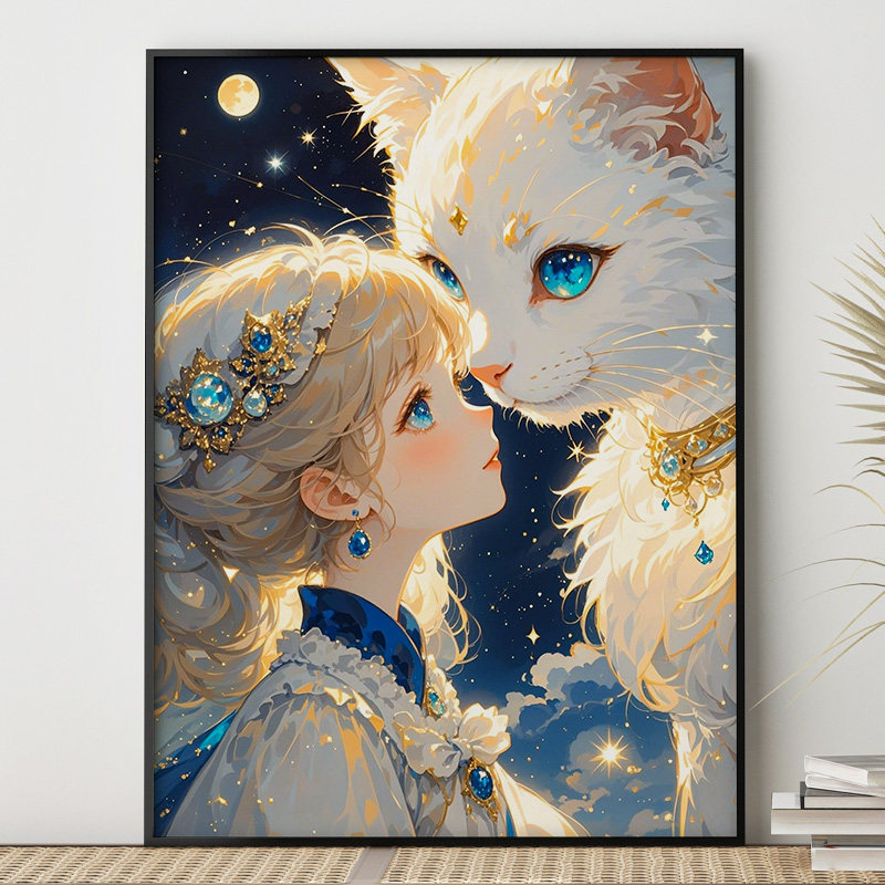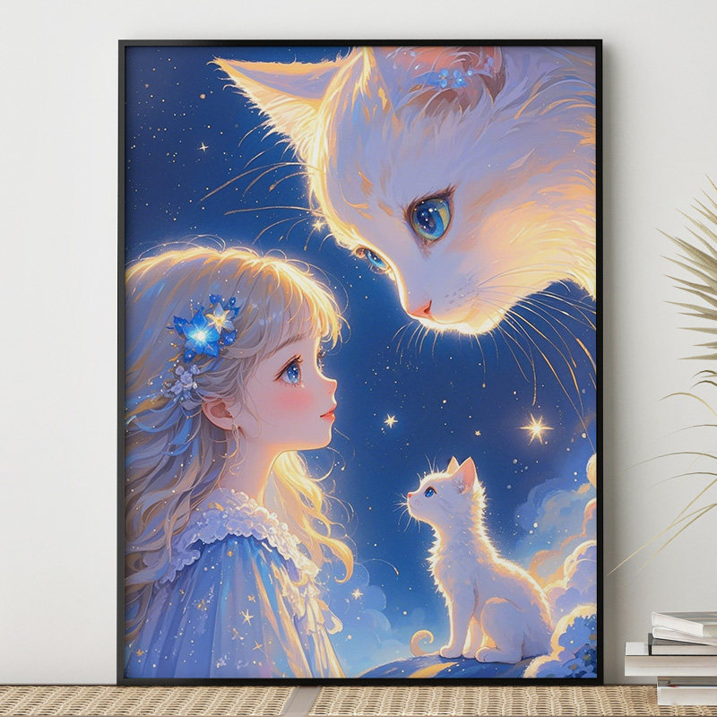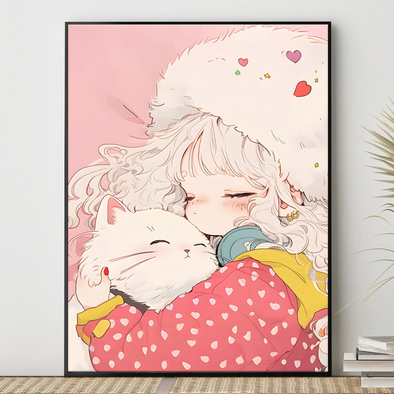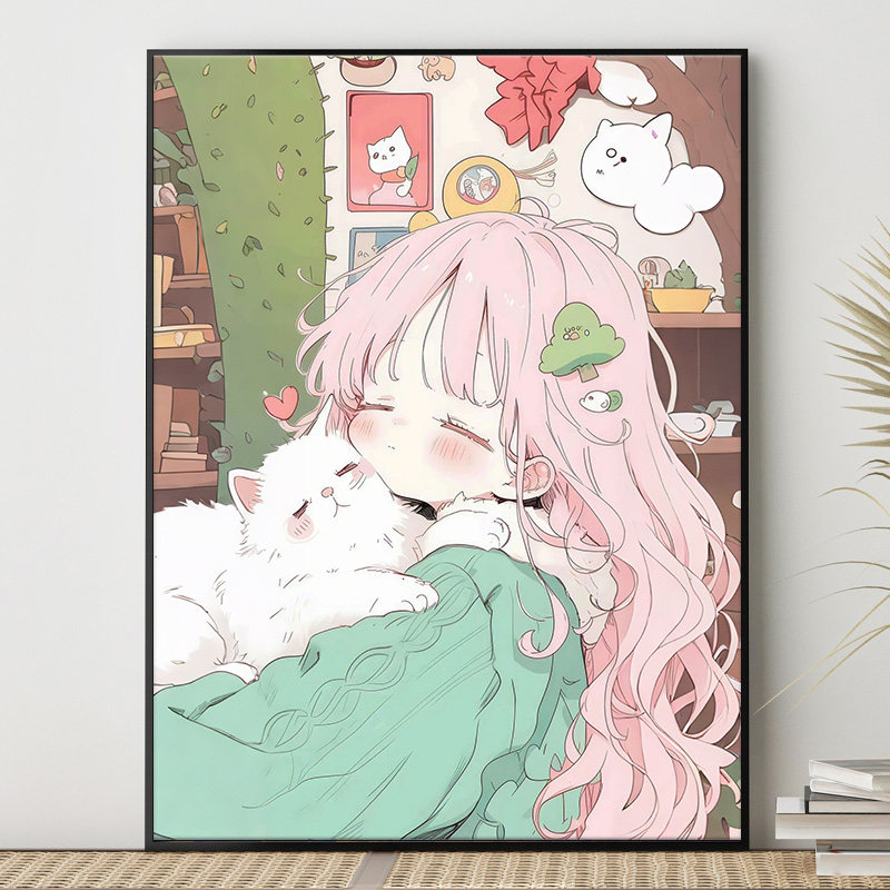 猫咪女孩数字油画diy填充填色解闷手绘治愈系丙烯油彩画2025新款