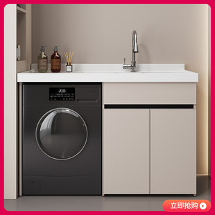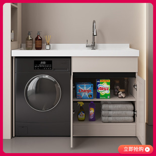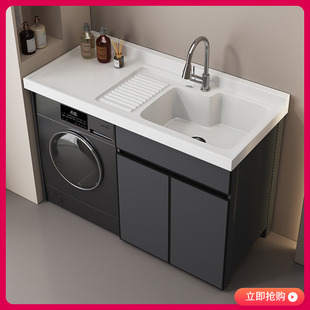 定制洗衣机一体柜太空铝石英石台盆柜阳台滚筒洗衣柜组合带搓衣板