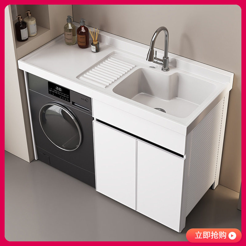 太空铝阳台洗衣机柜组合定制滚筒洗衣槽池台带搓板一体洗衣柜伴侣