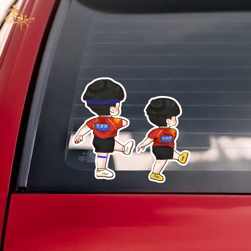 莎头组合王楚钦孙颖莎国乒乓球周边个性 创意反光汽车贴纸行李箱贴