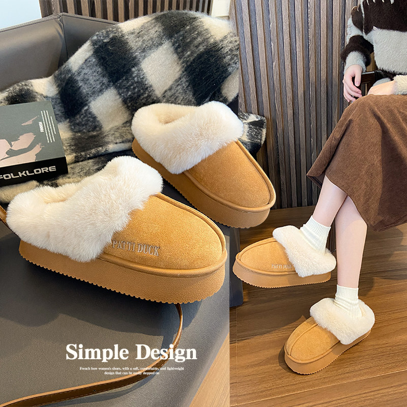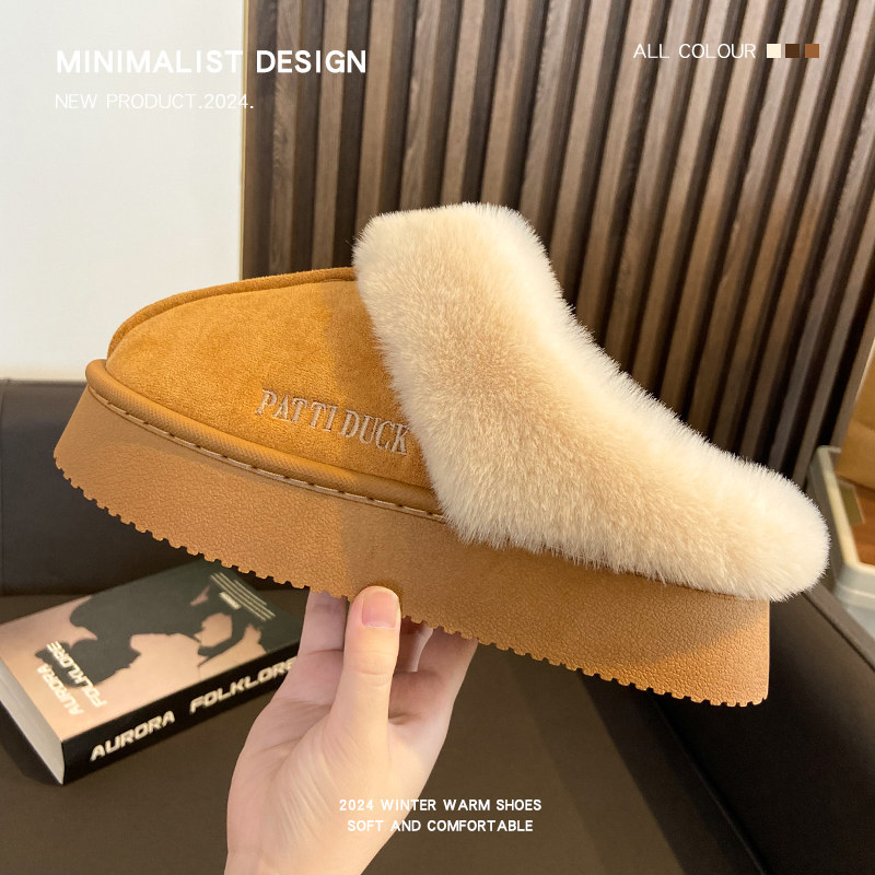 居家室内厚底外穿防滑毛毛绒麂皮绒棉拖 2024新款 棉拖鞋 女士秋冬季