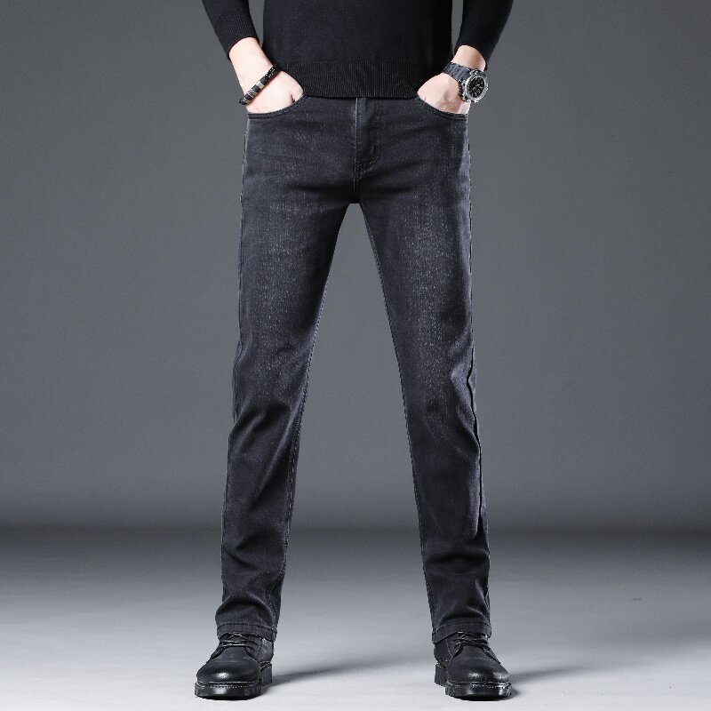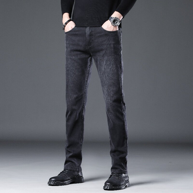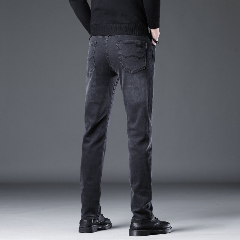 休闲弹力青年潮流裤 高端黑灰色牛仔裤 大码 直筒修身 子 男2025秋冬季