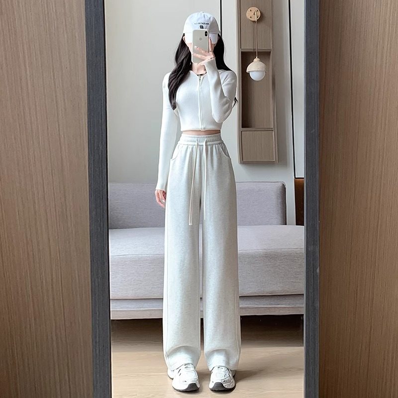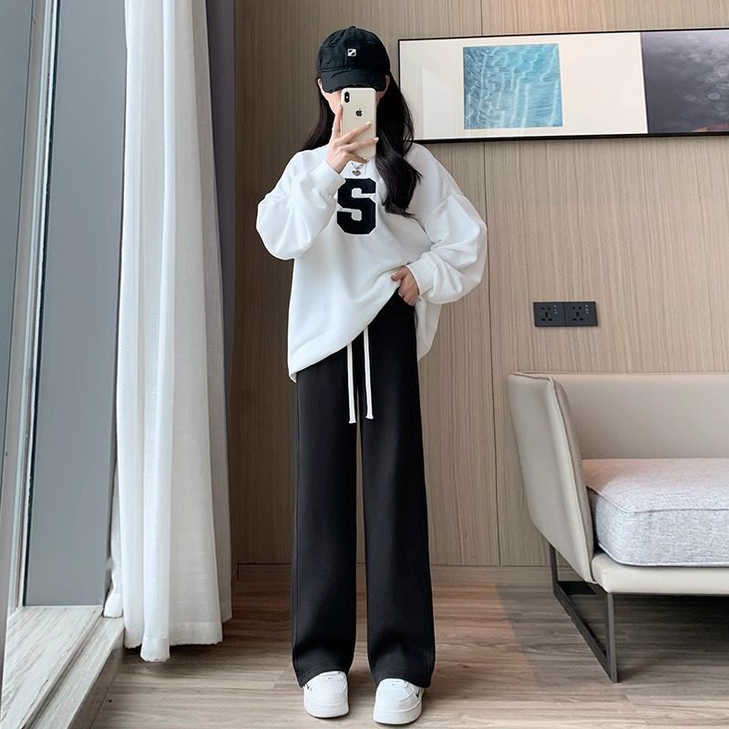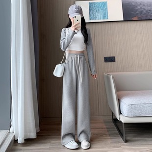 休闲垂感直筒运动裤 复合真超加绒窄版 高腰香蕉裤 女新款 阔腿裤