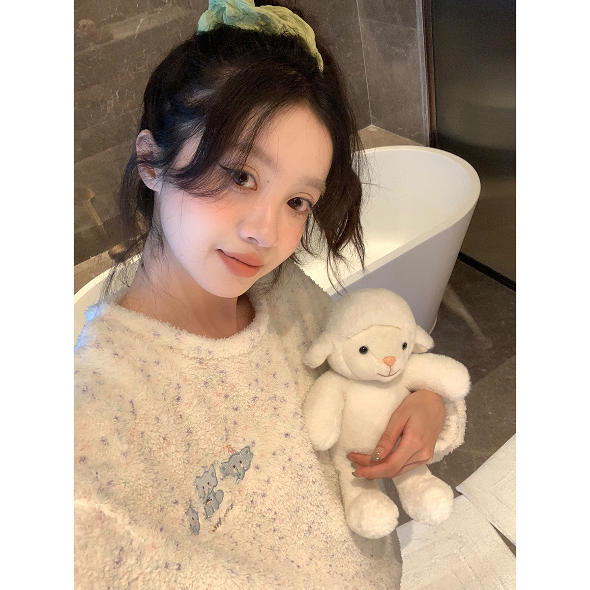 馨帮帮秋冬新款 圆领卡通珊瑚绒睡衣女加厚保暖亲肤外穿家居服套装