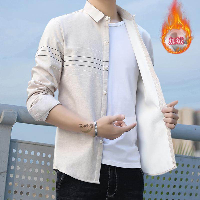 职业上班潮衬衣 免烫商务正装 拓丽雅秋冬男士 加绒加厚保暖百搭衬衫