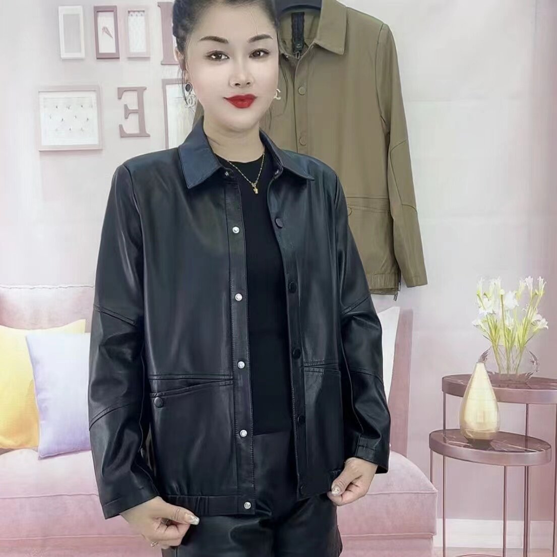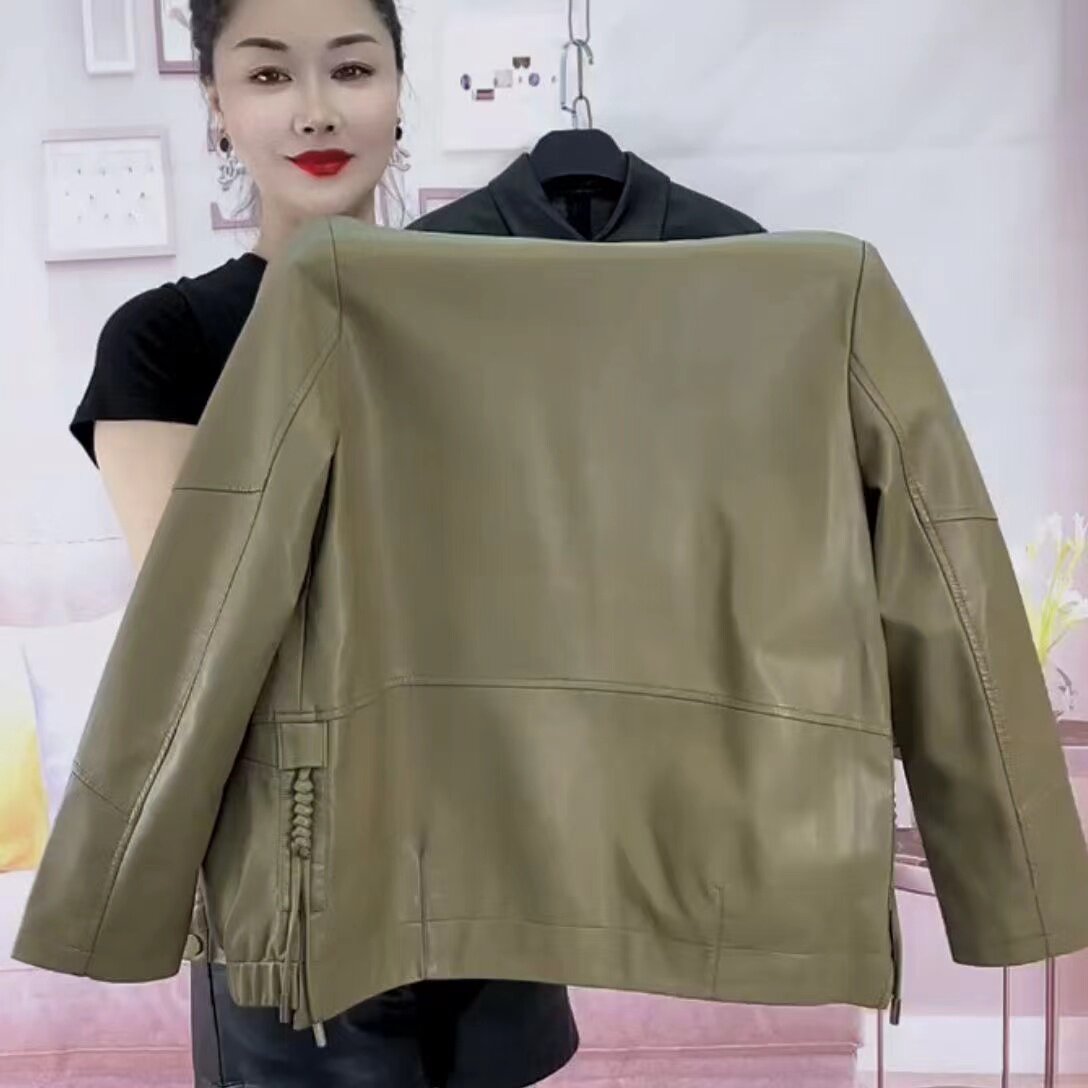 宽松时尚 中年妈妈大码 气质夹克上衣 皮衣外套女2025年春秋新款 短款