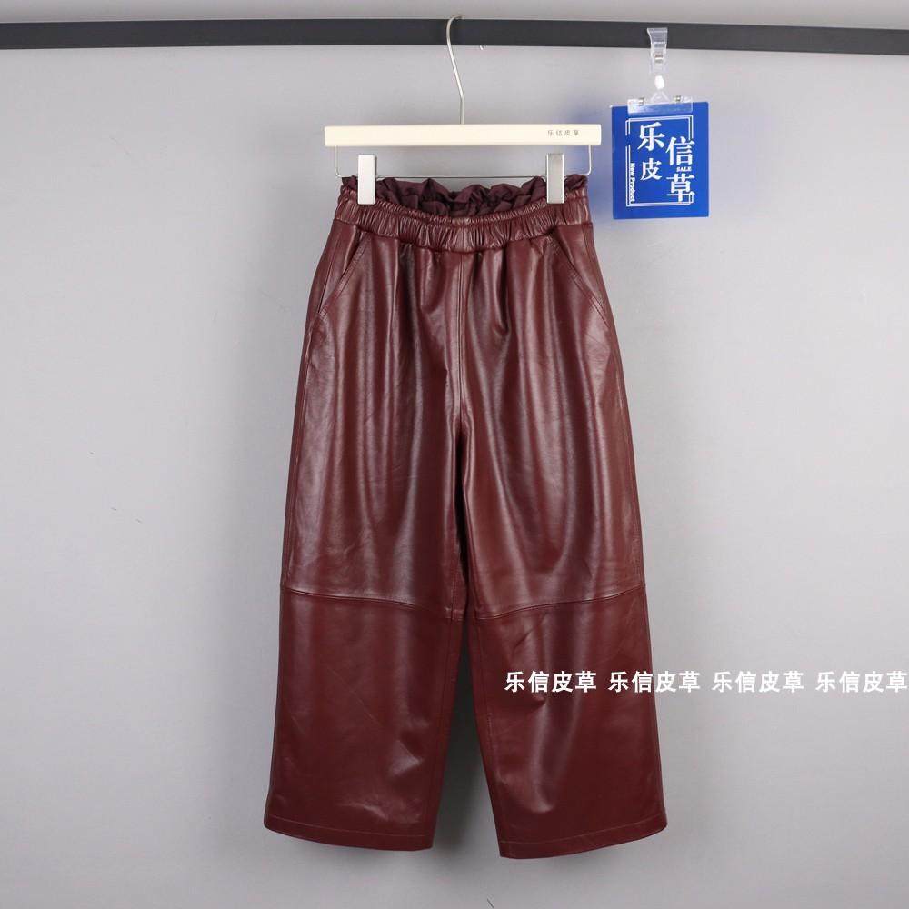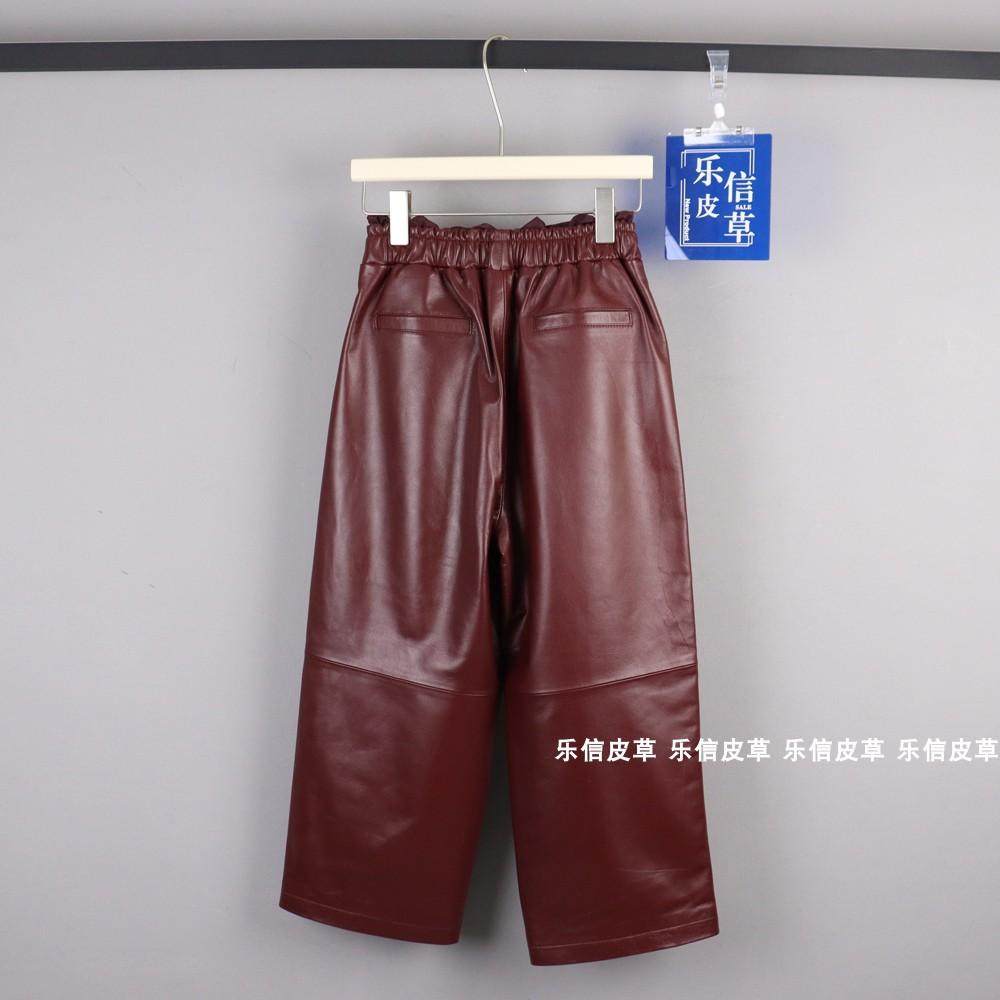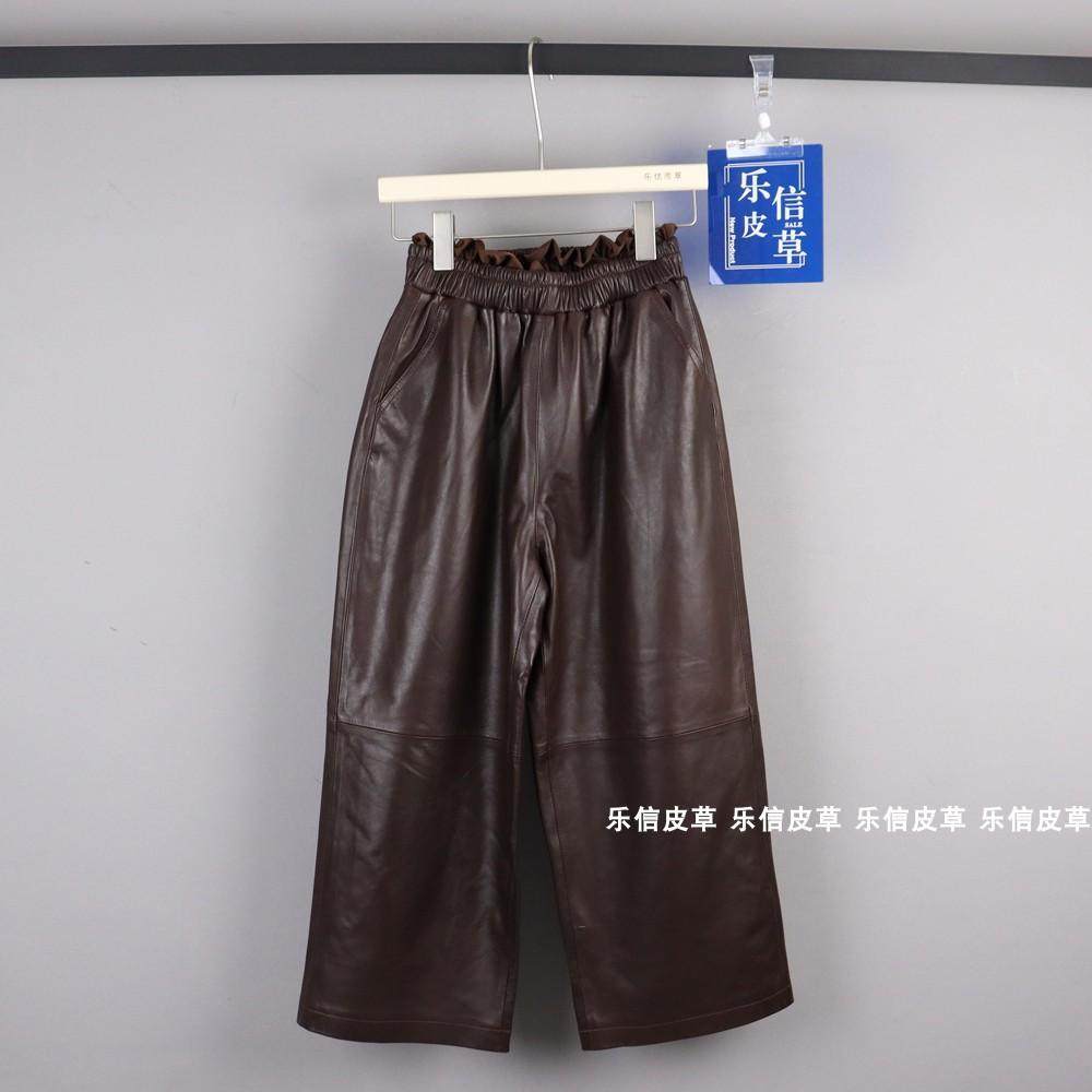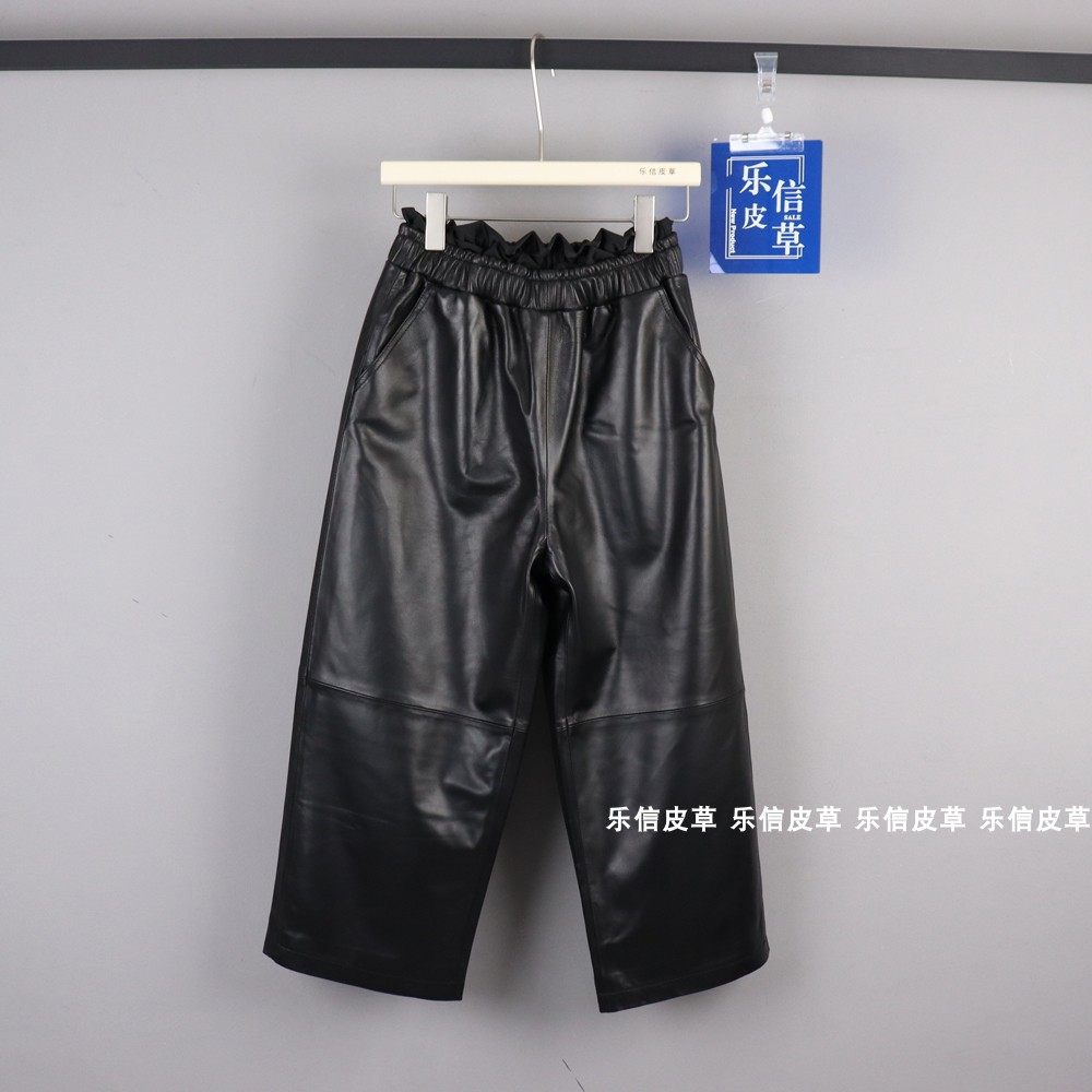 绵羊皮松紧腰真皮皮裤 潮流三季 九分裤 2024年阔腿裤 木耳边 可穿新款