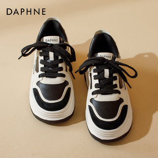 女款 厚底德训鞋 2026新款 黑白复古休闲小白鞋 子 春季 达芙妮百搭板鞋