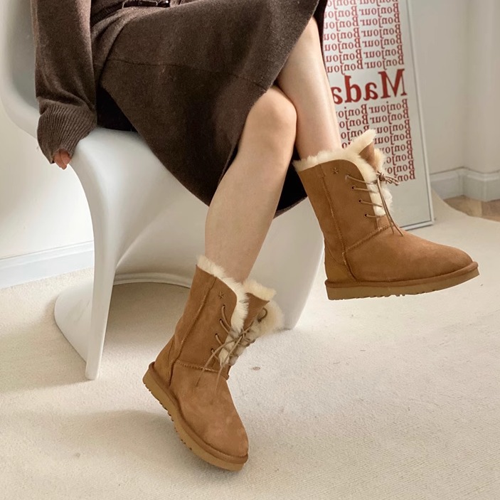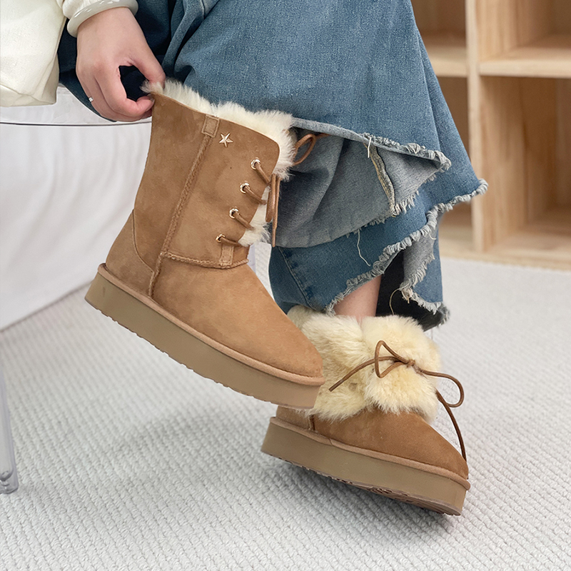 女神鞋 星星 雪地靴女皮毛一体两穿系带蝴蝶结中筒大长靴千颂伊同款
