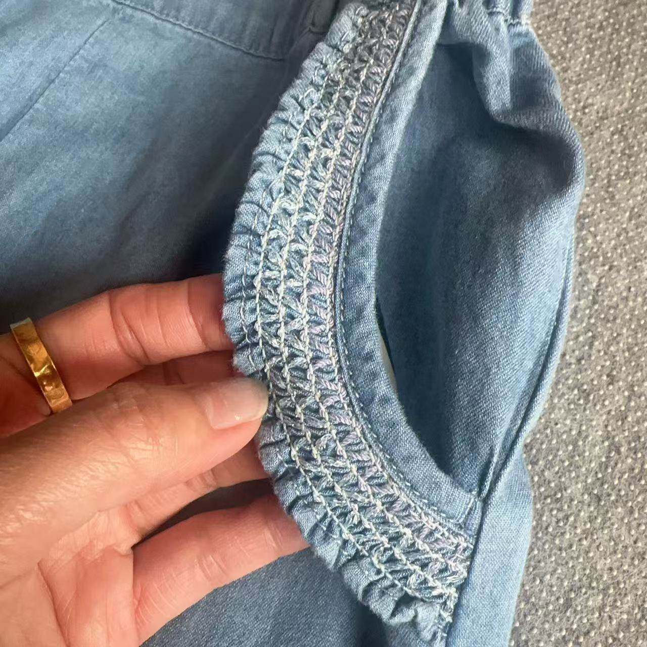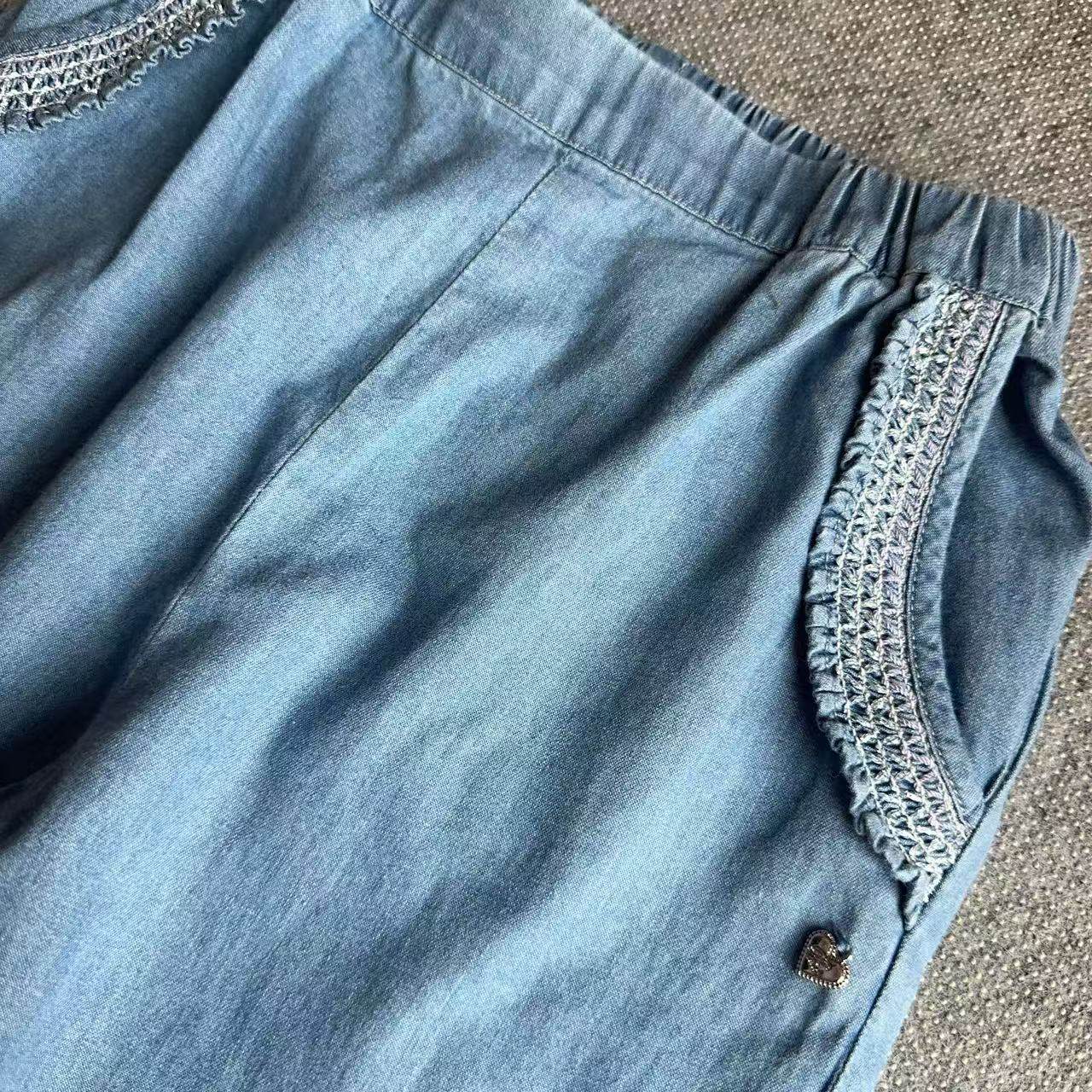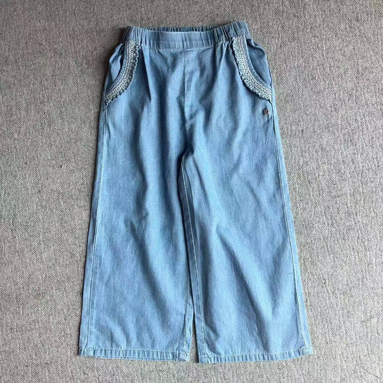 110 160水洗棉牛仔裤 裤 外单女童夏季 子 长裤 新款 直通裤 时尚 阔腿裤