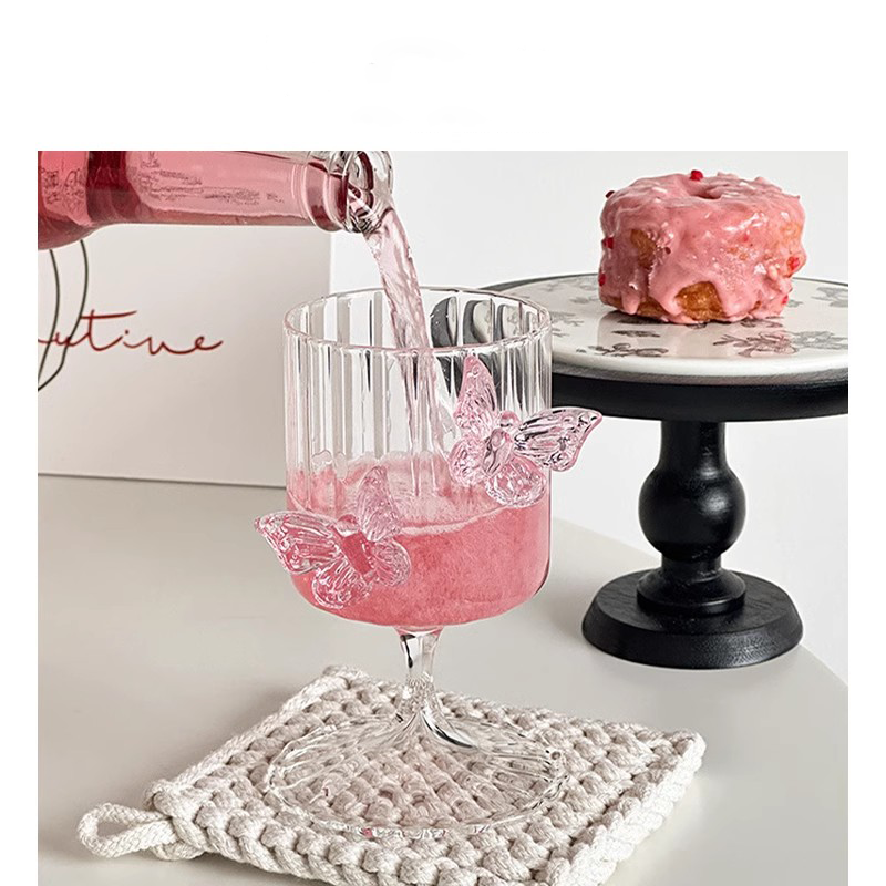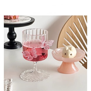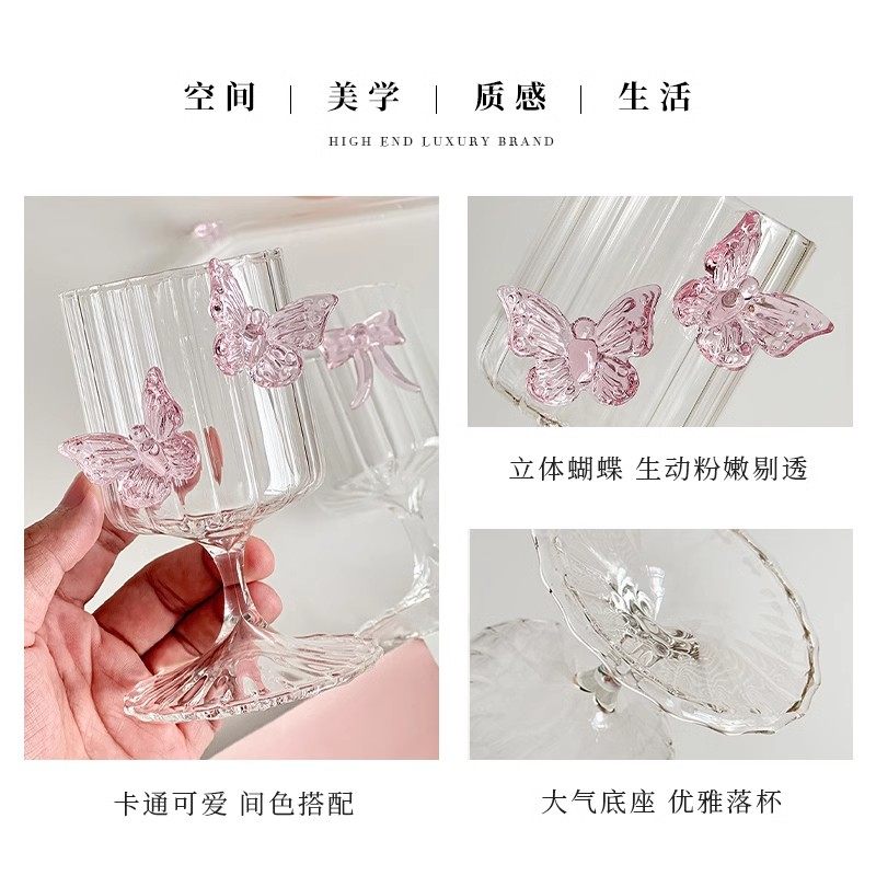 日本三霜蝴蝶浮雕玻璃杯高颜值饮料杯香槟杯甜酒杯轻舞杯子礼物