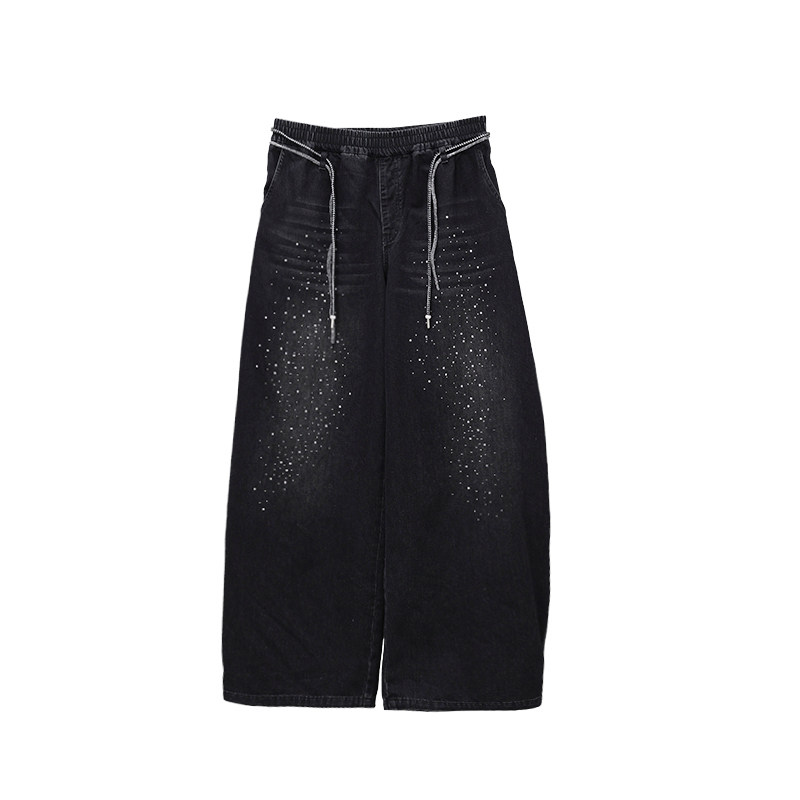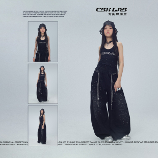 CBXLAB儿童街舞潮牌黑色烫钻亮闪牛仔裤 复古JAZZ嘻哈要运动潮 美式