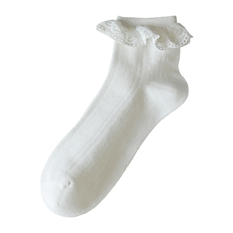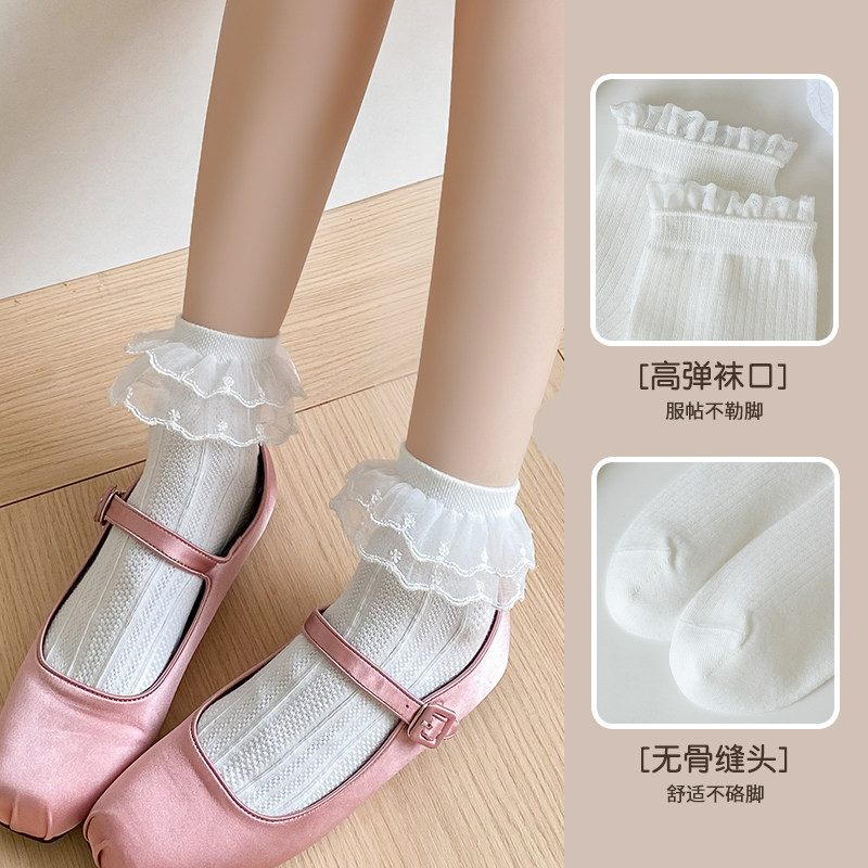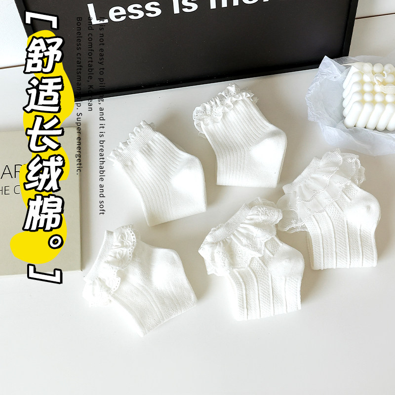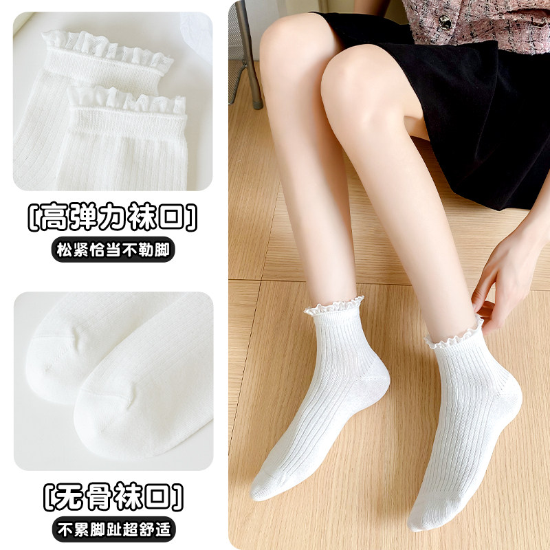 纯色棉袜无骨袜子 薄款 袜子女短袜纯棉白色花边袜子蕾丝边短款 夏季