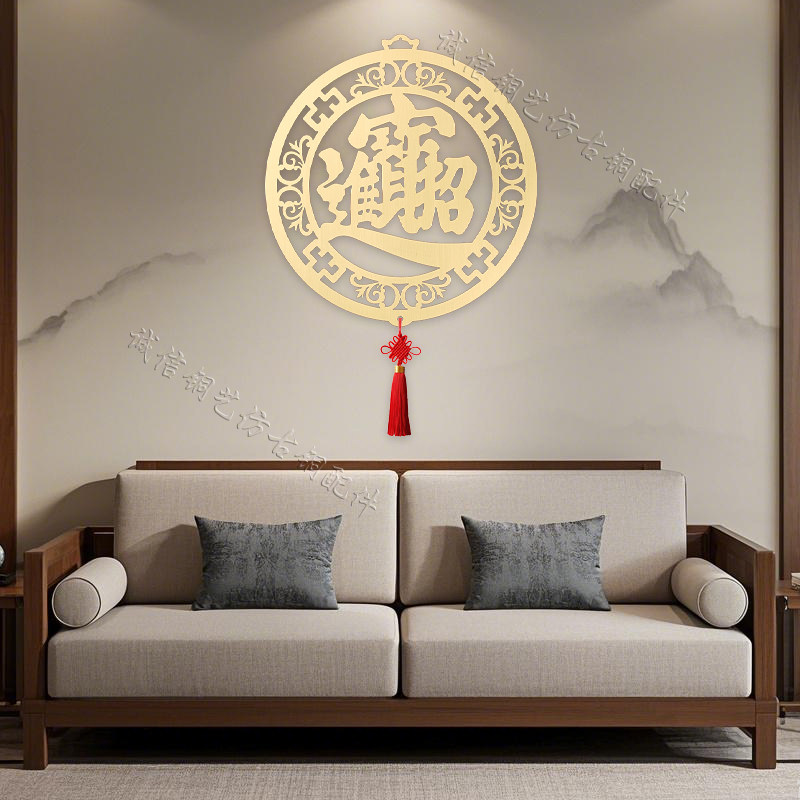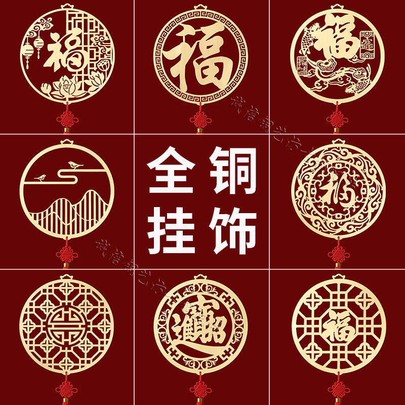 中式 饰壁挂客厅过道走廊福字挂件背景墙面壁饰 入户玄关纯铜镂空装
