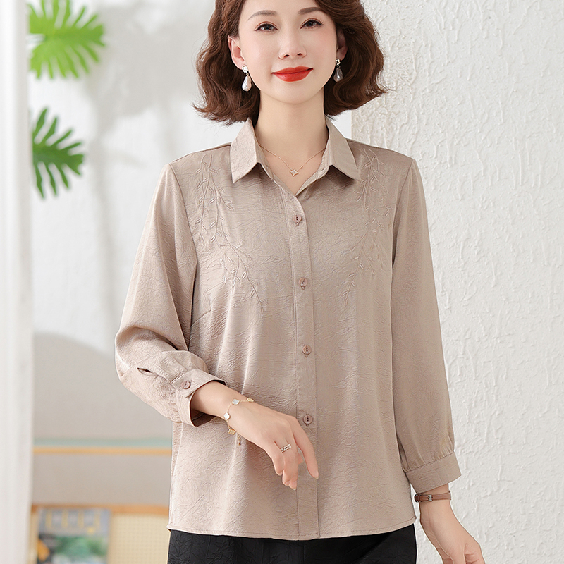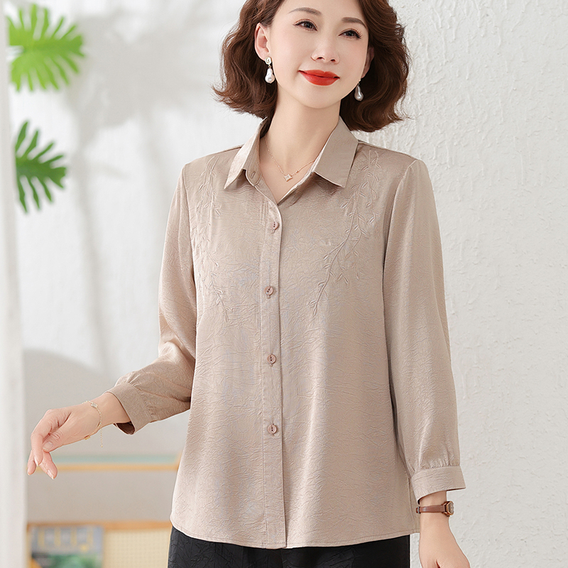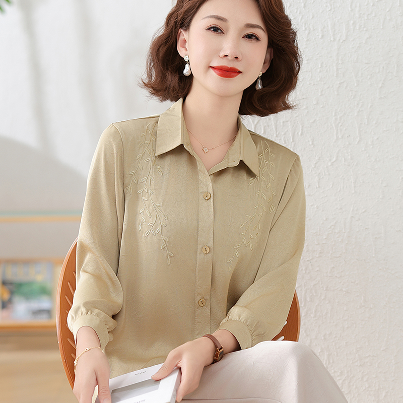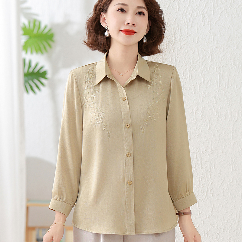 上衣洋气胖妈妈装 衬衫 刺绣衬衣夏季 薄款 中老年女装 打底衫 春秋长袖