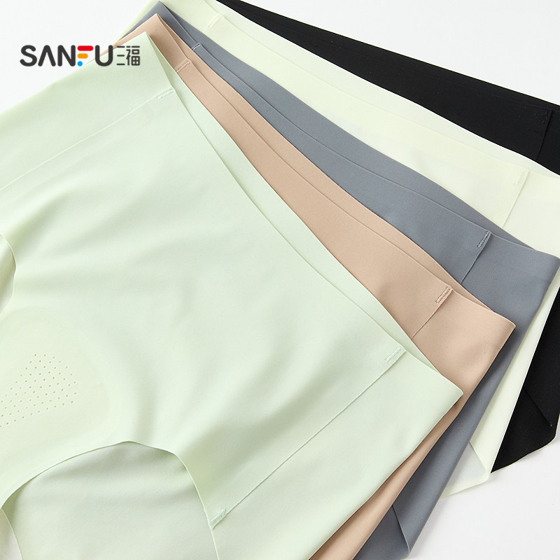 不卷边平角裤 女无痕冰丝纯棉裆打底裤 女 防走光内裤 六只兔子安全裤