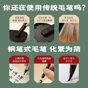 秀丽笔临摹字帖抄经软笔 毛笔可换墨囊水小中楷科学毛笔便携科学成人小学生练字专用书法套装 六品堂新款 钢笔式