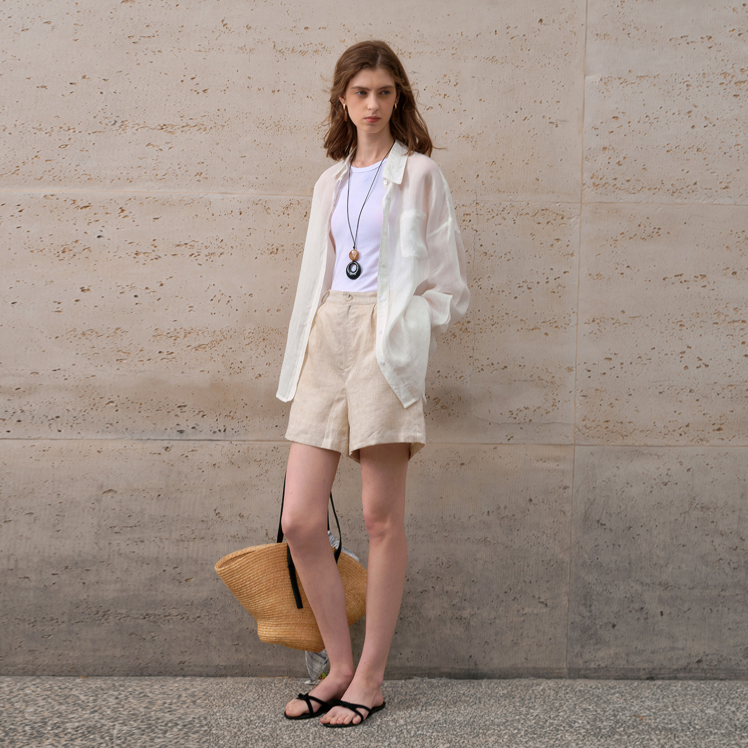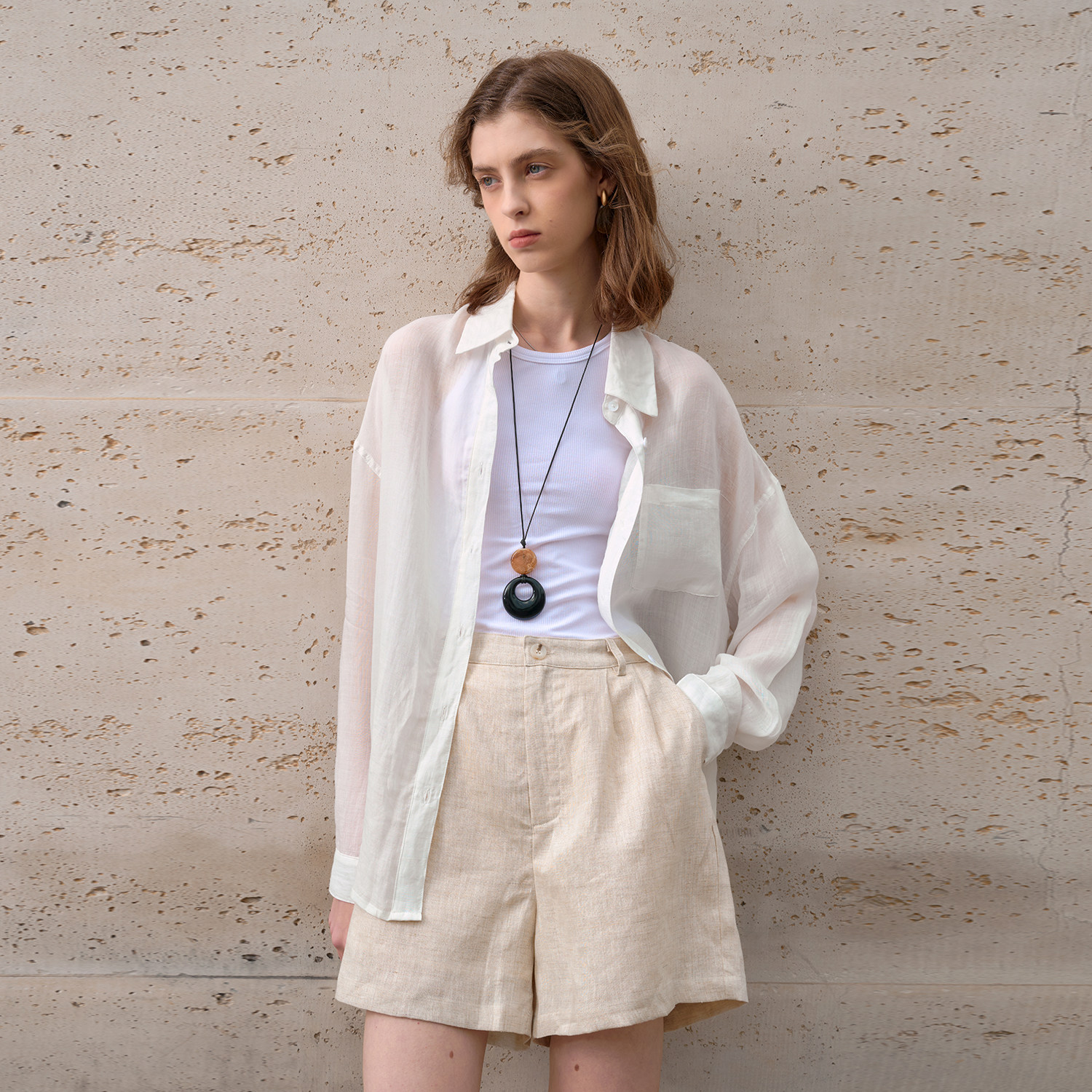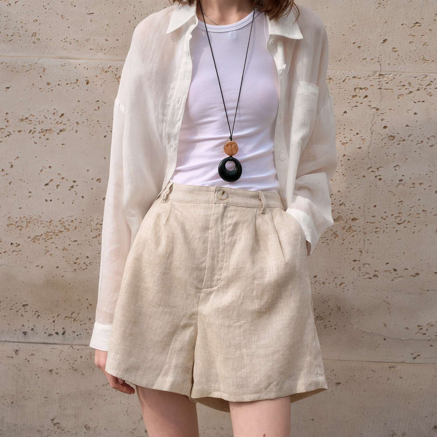 度假阔腿休闲裤 夏季 a字宽松热裤 女高腰显瘦五分裤 100%纯亚麻短裤