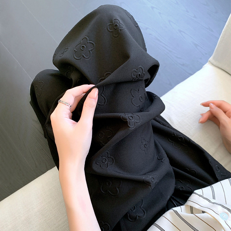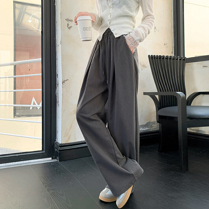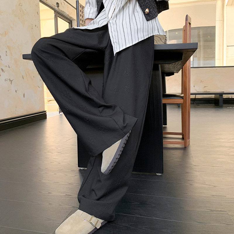 女 休闲裤 高级感 显腿长浮雕3D山茶花凹凸印花压褶高腰垂坠阔腿裤