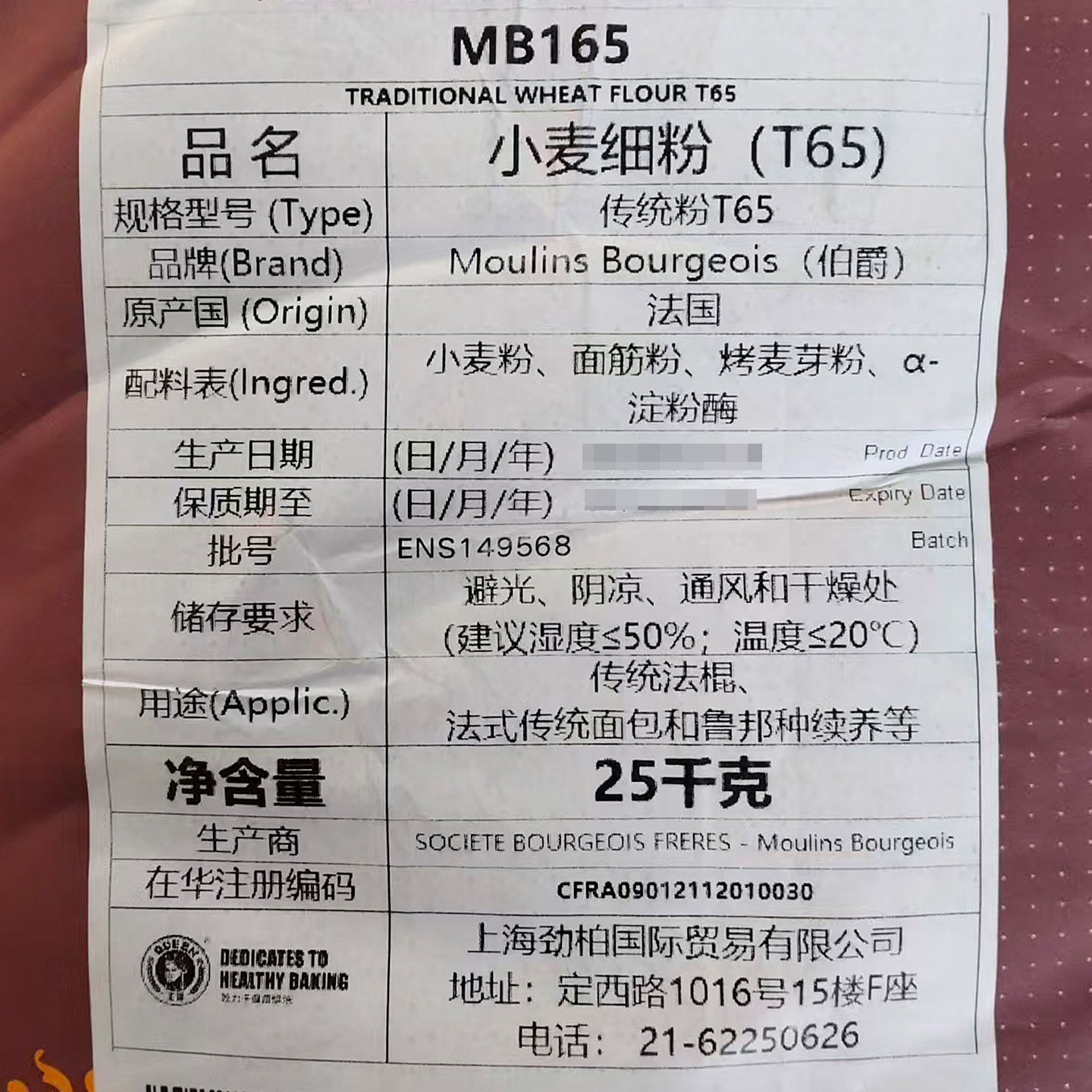 法国伯爵传统T65T55T45面粉25kg 面包吐司粉法棍细小麦粉烘焙 法式