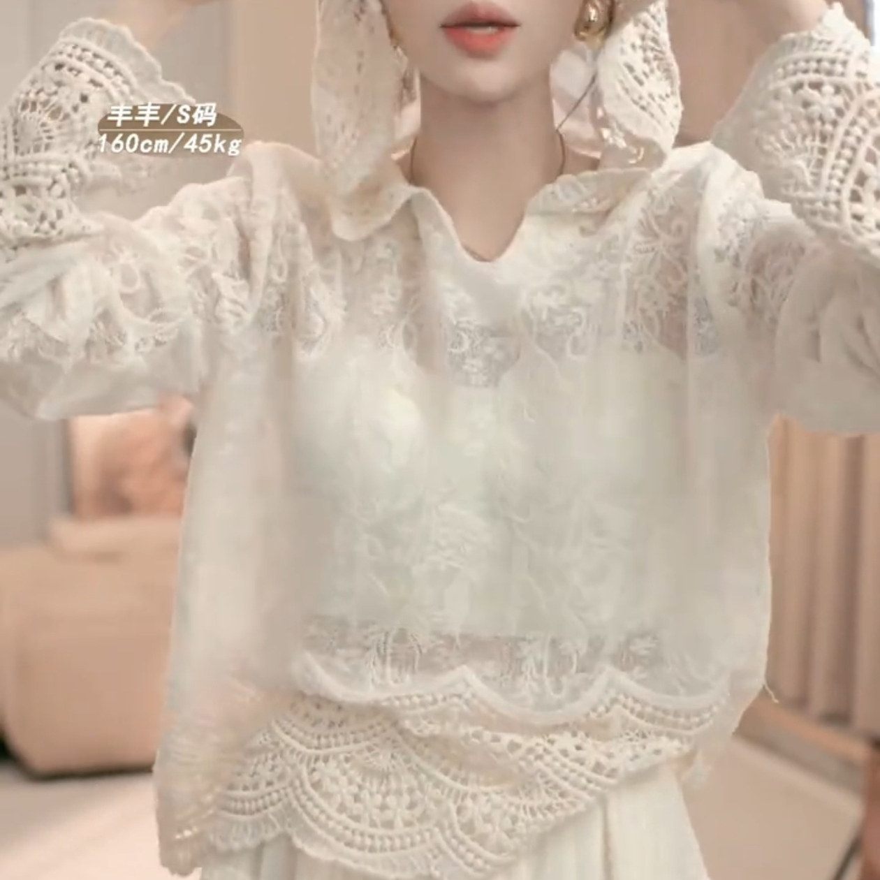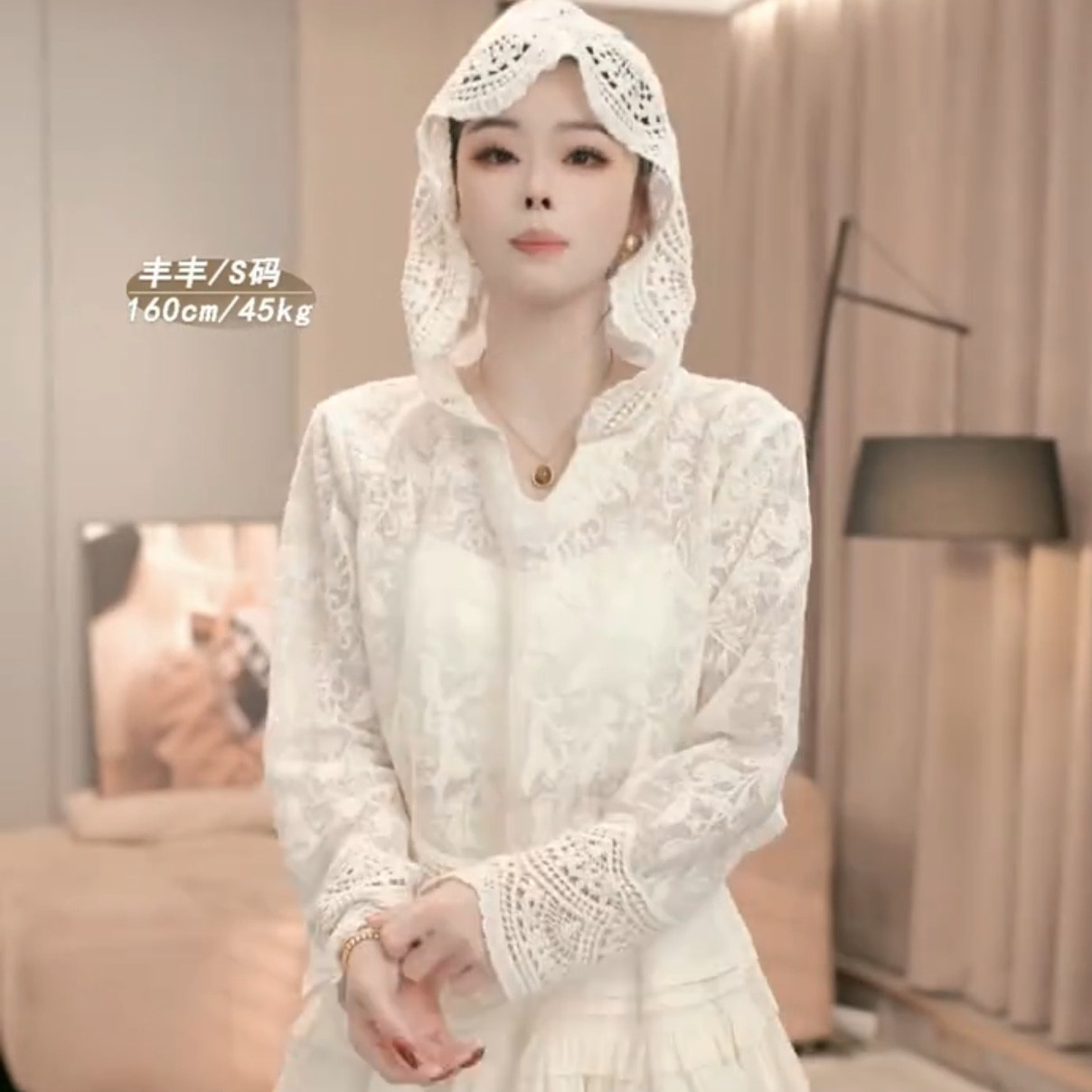 小个子短裙两件 女2025年新款 春季 穿搭一整套裙蕾丝边重工钩花帽衫
