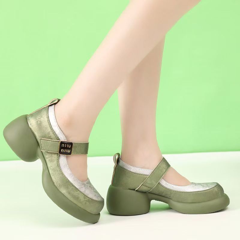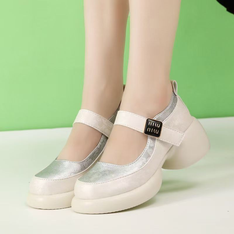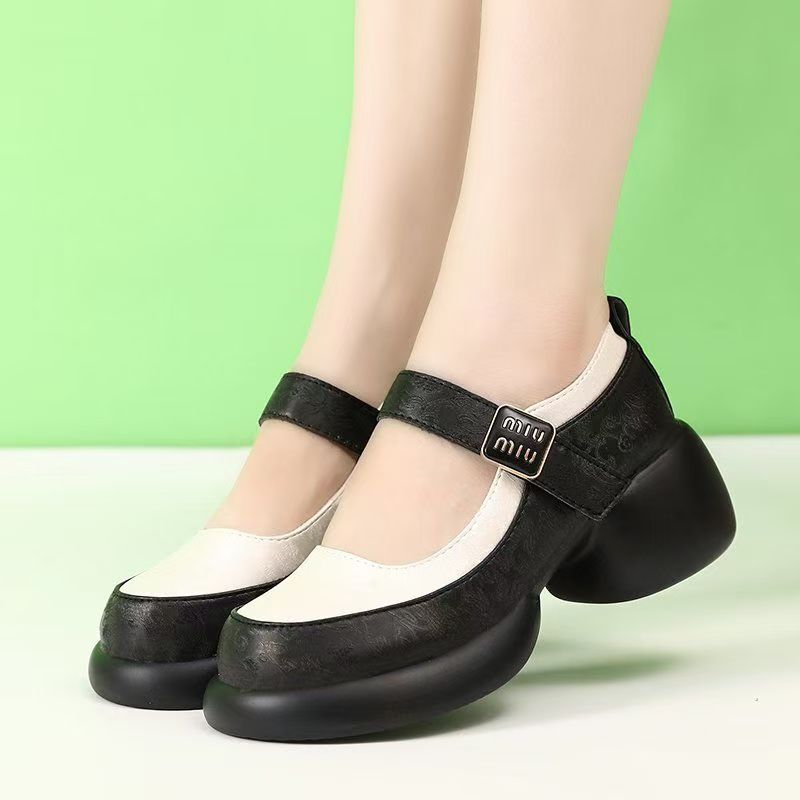 浅口耐磨圆头单鞋 爆款 厚底2025玛丽珍鞋 拼色女鞋 洋气 松糕皮鞋 新款