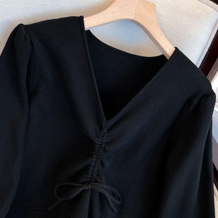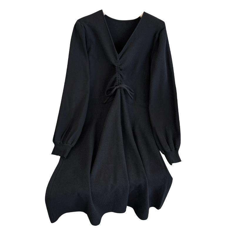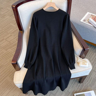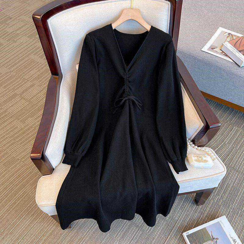 法式 秋冬V领遮肉针织毛衣裙 洋气纯色时髦高级感女胖MM300斤加大码