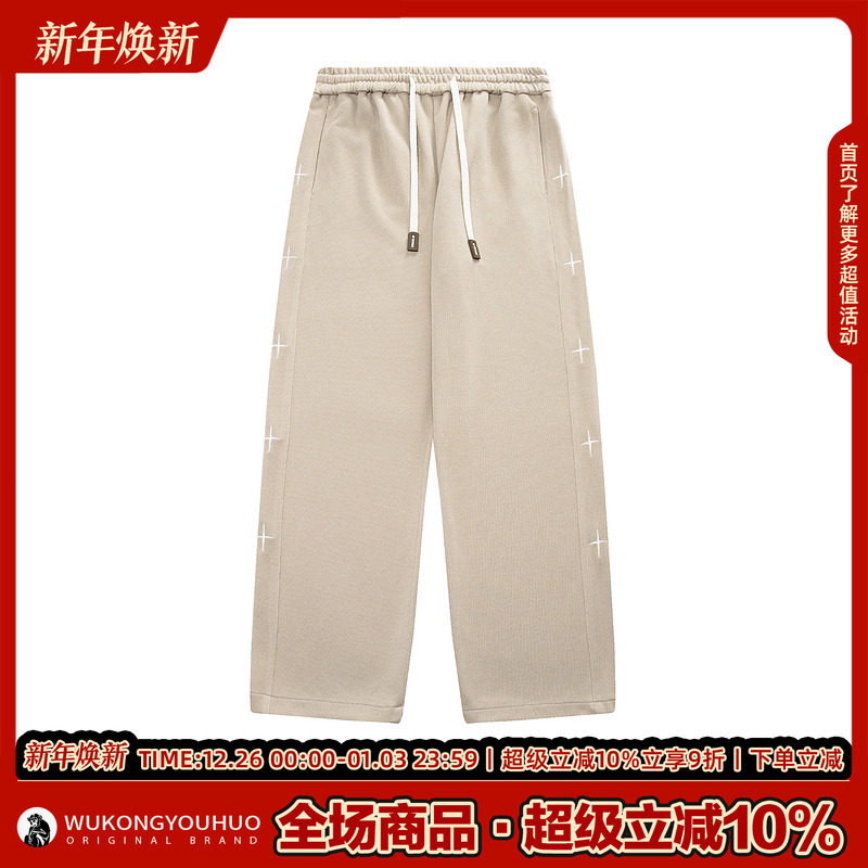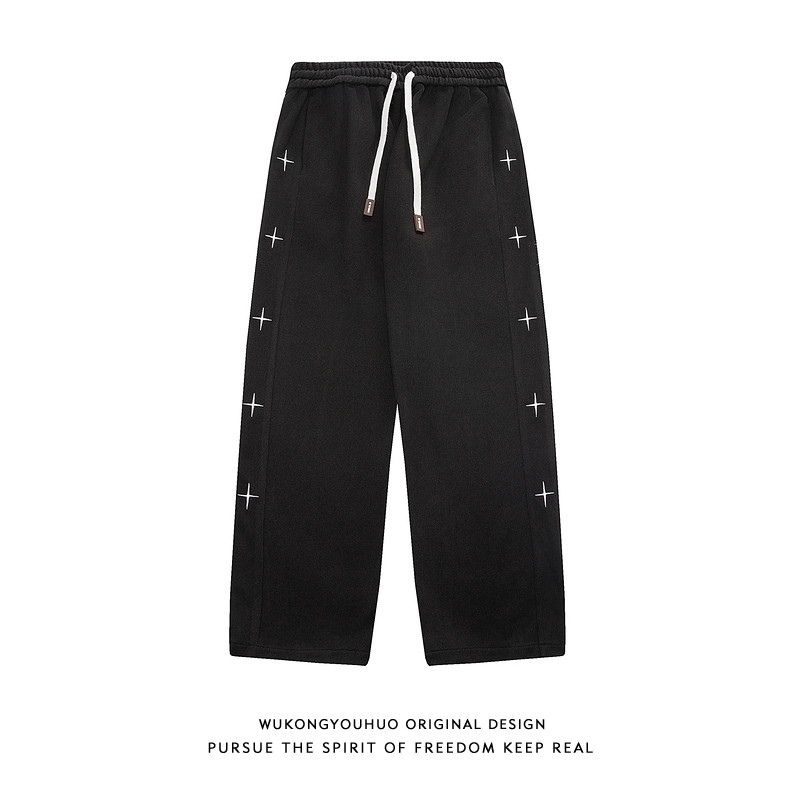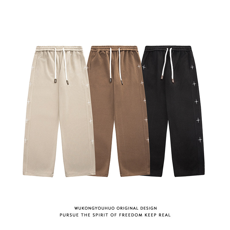 男复古街头宽松垂感百搭长裤 悟空有货美式 潮牌刺绣直筒阔腿休闲裤