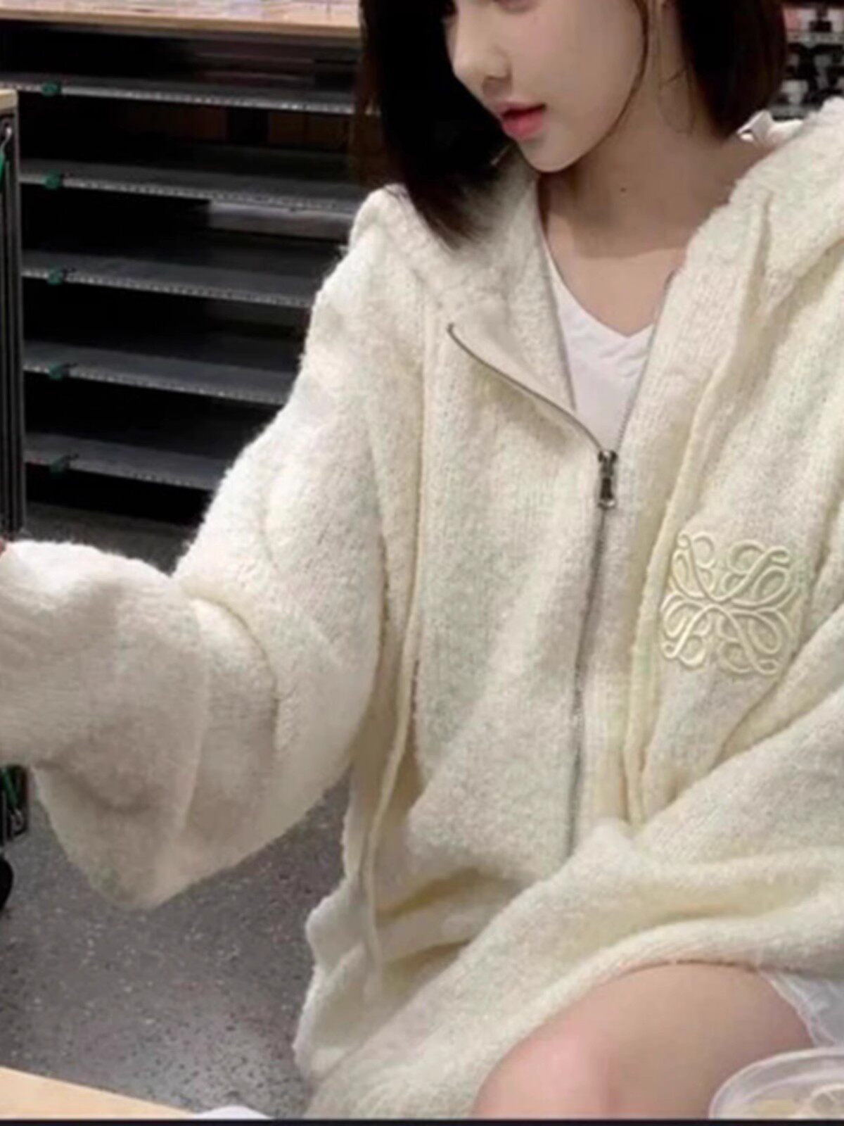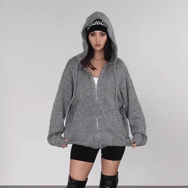 连帽外套秋冬 羊毛衫 韩国badblood针织毛衣女博主推荐 百搭拉链开衫